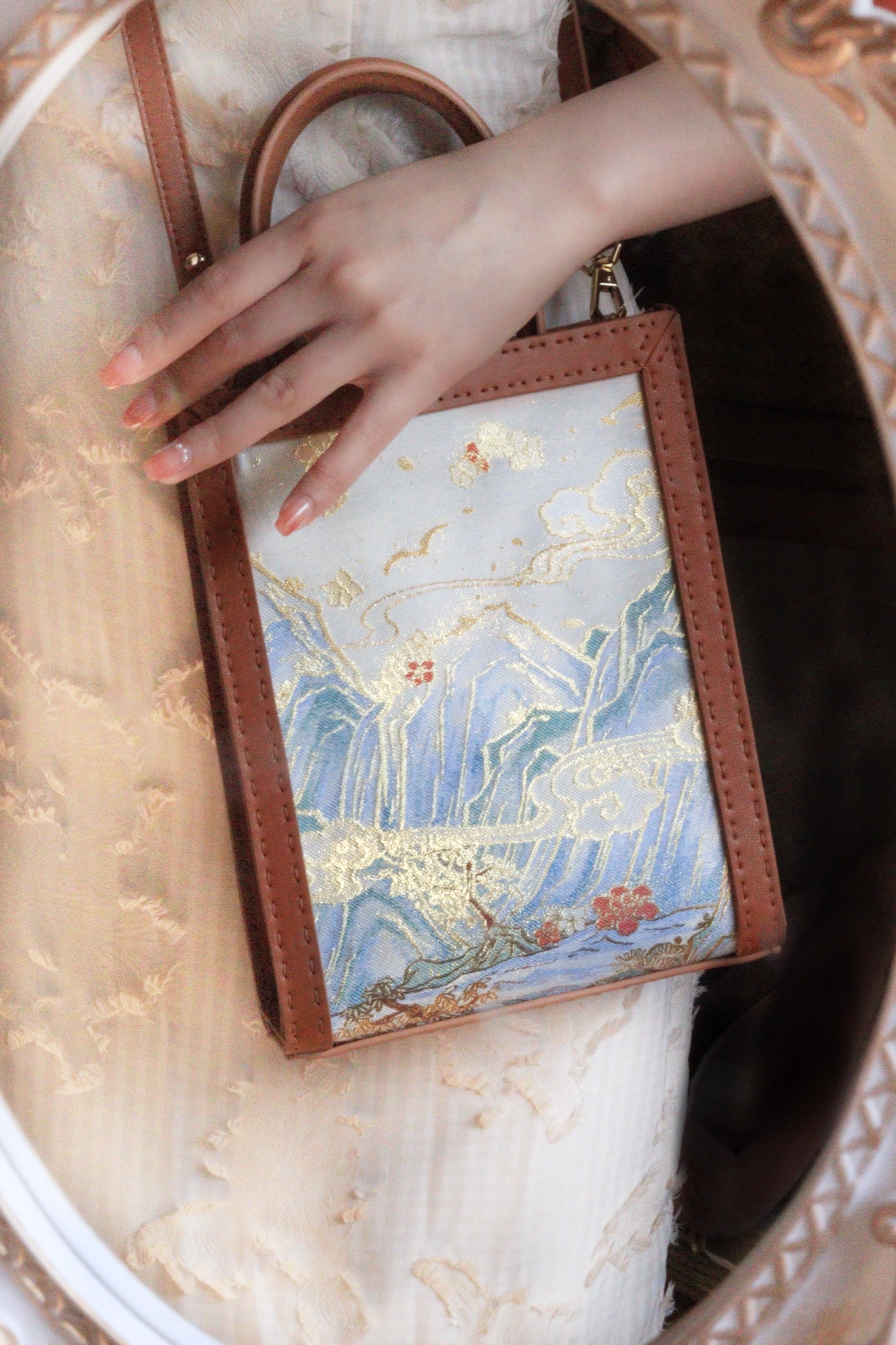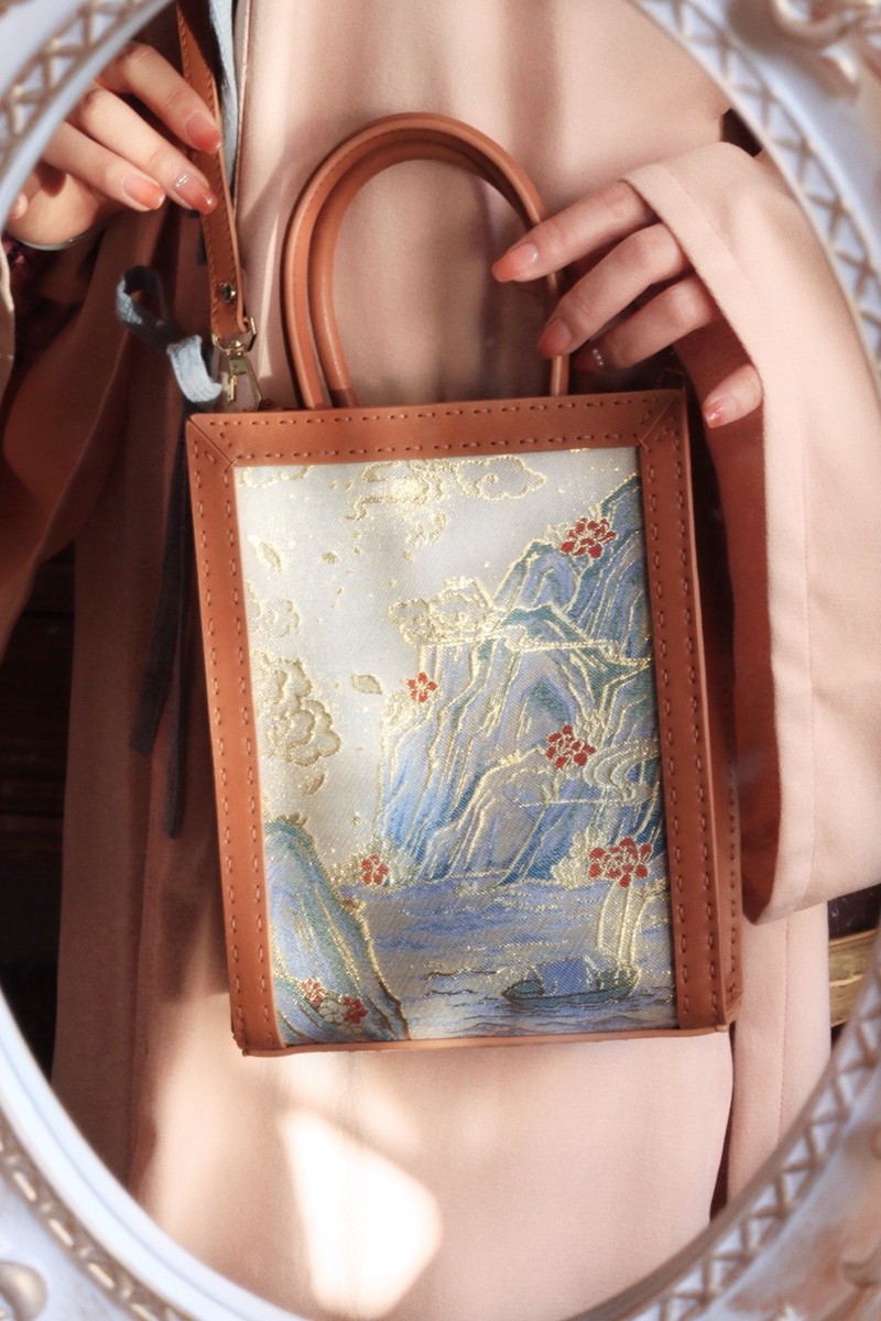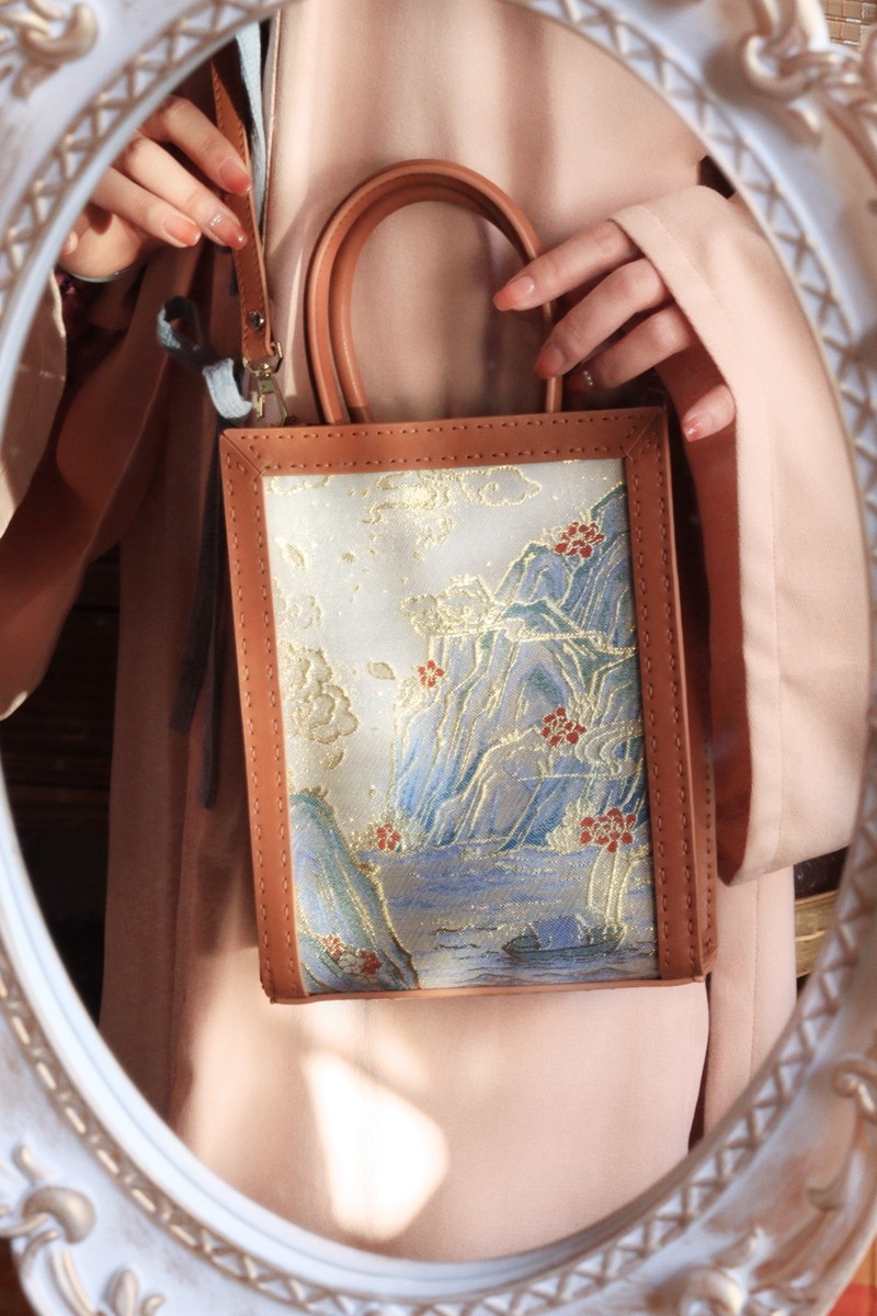 Ancient Wind Qipao Qipai Kit Hanfu Vertical version of the Entrusted Single Shoulder Bag Cross Section Casual Temperament Practical Landscape Textured Leather Cortex