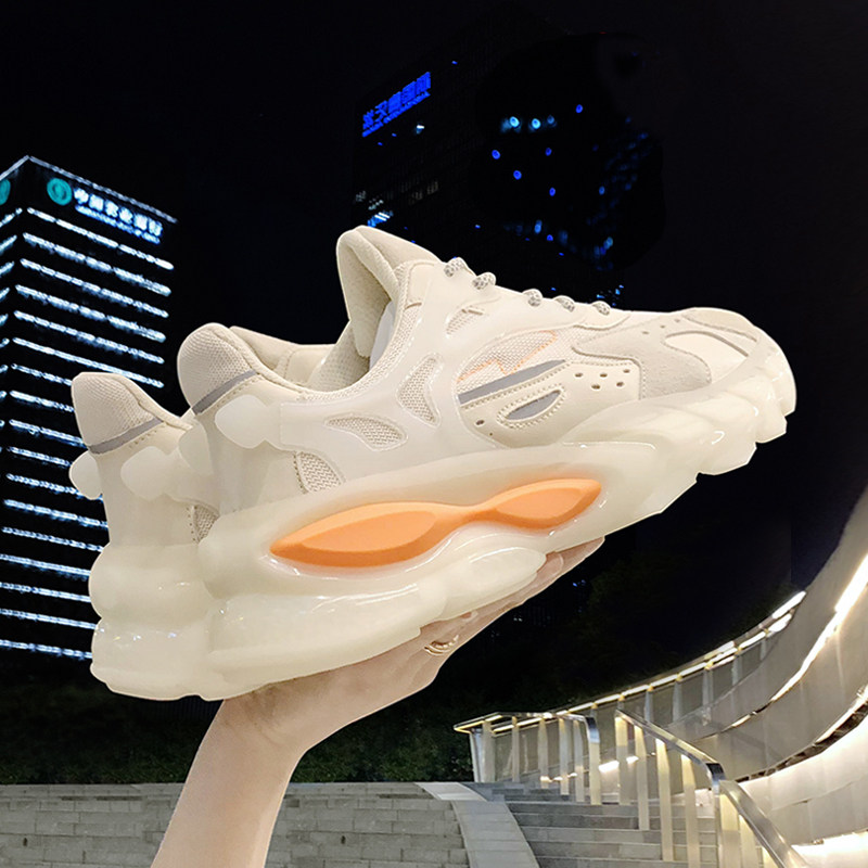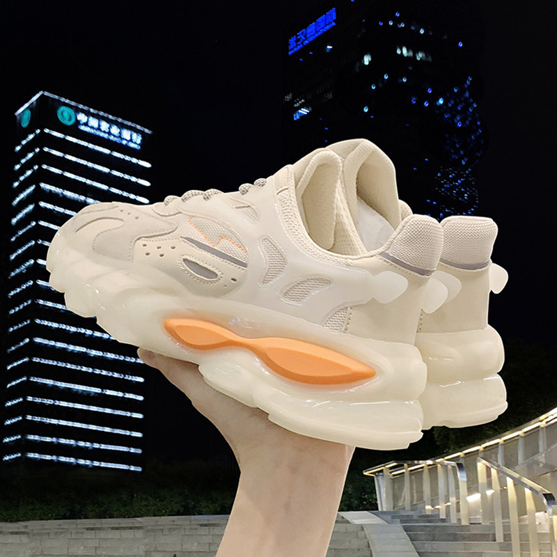 Old Daddy Shoes Man Boomers Popcorn Shock Absorbing Air Cushion Running Sneakers Male Splicing Breathable Thick Bottom Little White Shoes Man