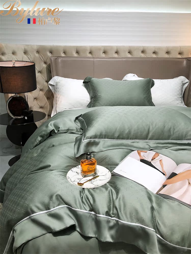 Bylure Light Luxury Ice Silk Four-piece Summer 80 Lenzing Tencel Nude Sleeping Silky Quilt Cover Sheet Bedding