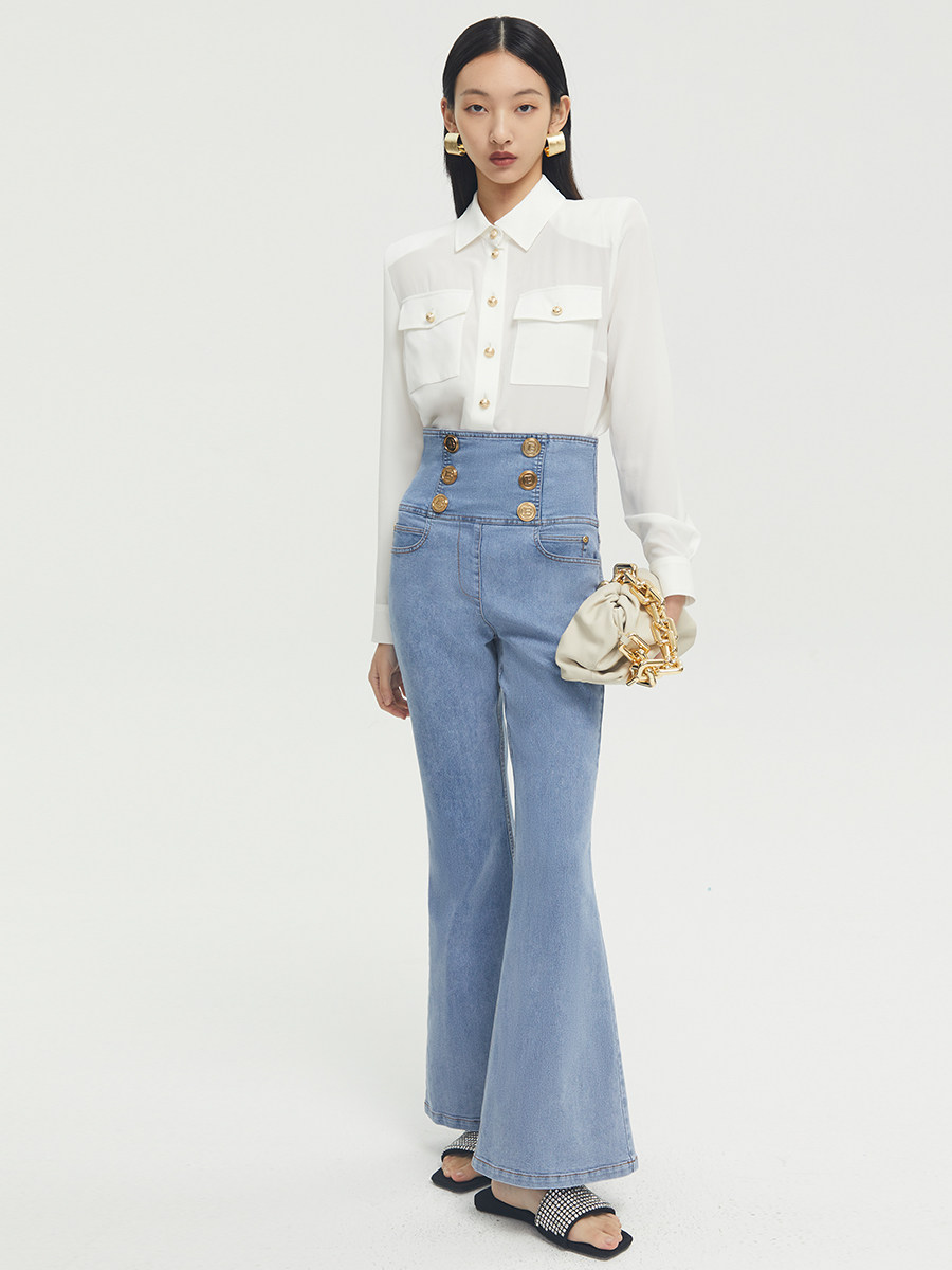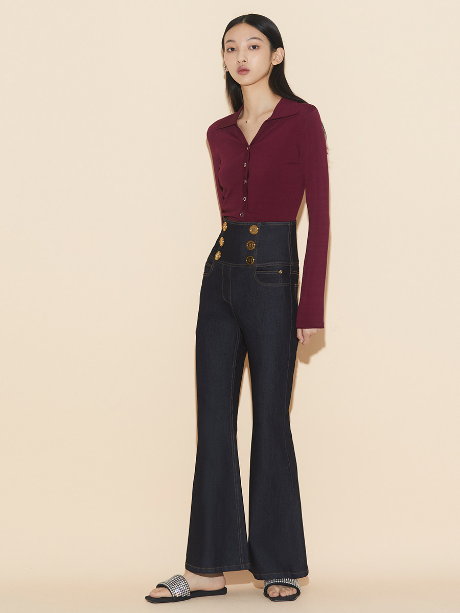 Boss Z's high-waisted bootleg jeans women's French retro exquisite three-dimensional cut wide-leg pants horseshoe pants look thin