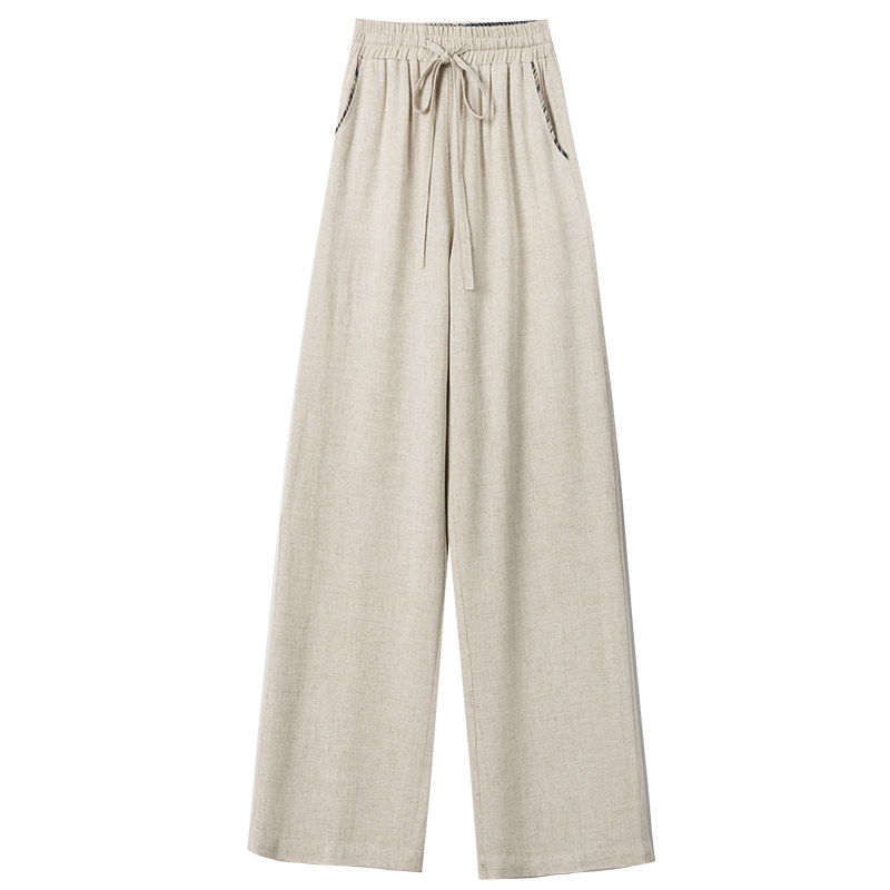 Cotton and linen wide pants women spring and autumn high waist hanging feeling mop pants loose slacks ice silk straight pants linen women's pants