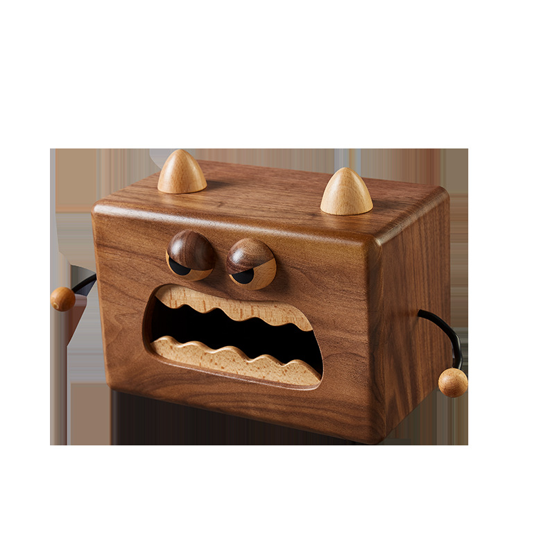 Little Monster Solid Wood Tissue Box Living Room Black Walnut Toilet Paper Box Creative Cartoon Storage Box Furniture Decoration Ornament