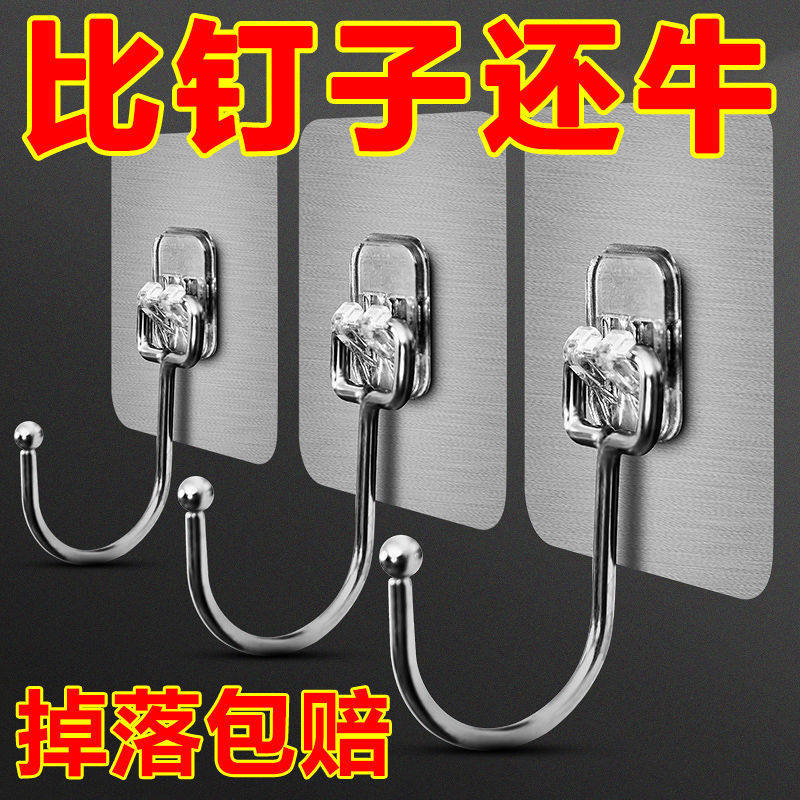 Non-marking stainless steel hook paste strong wall adhesive hook household adhesive hook kitchen hanging hook free punching hanging large