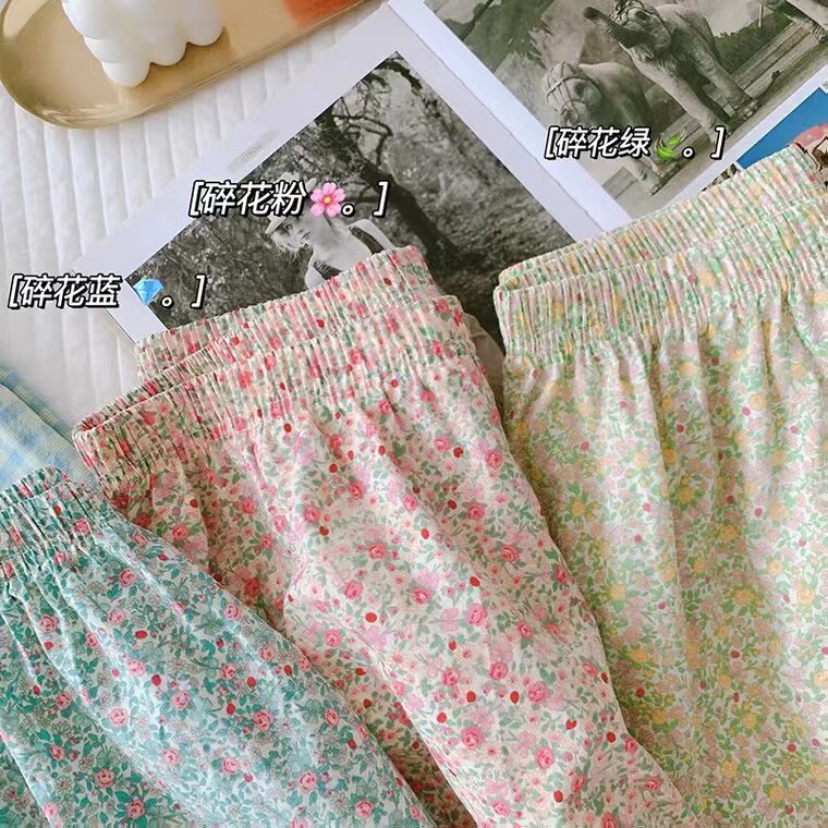 Summer pajama pants high waist sports pants thin pants women's summer floral wide leg pants loose home casual pants shorts