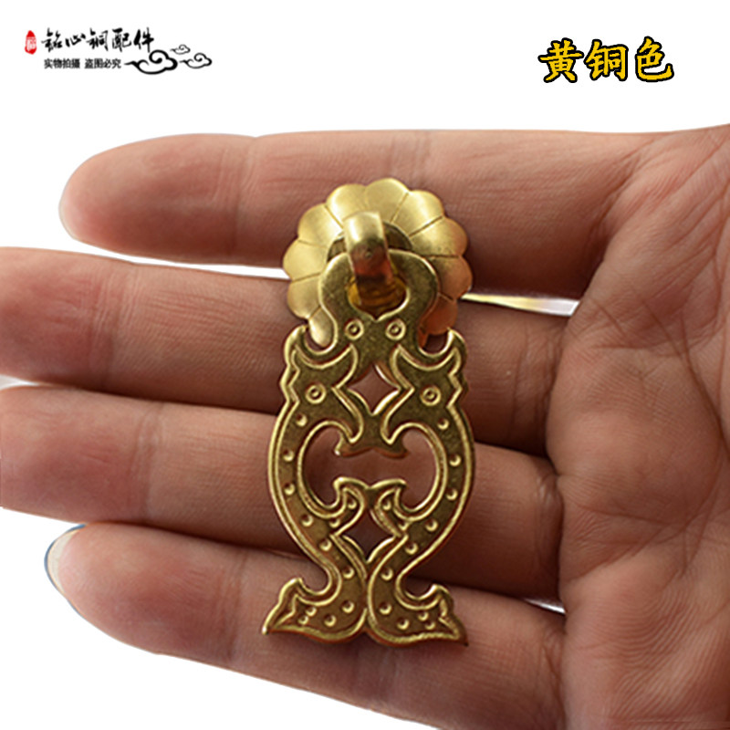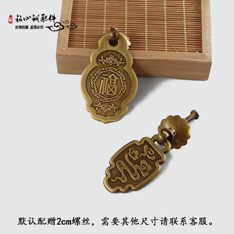 New Chinese-style pure copper cabinet door golden pendant small handle single-hole handle overall cabinet drawer medicine cabinet antique all-copper handle