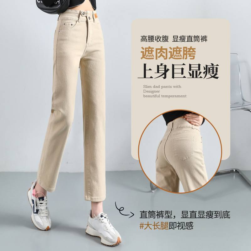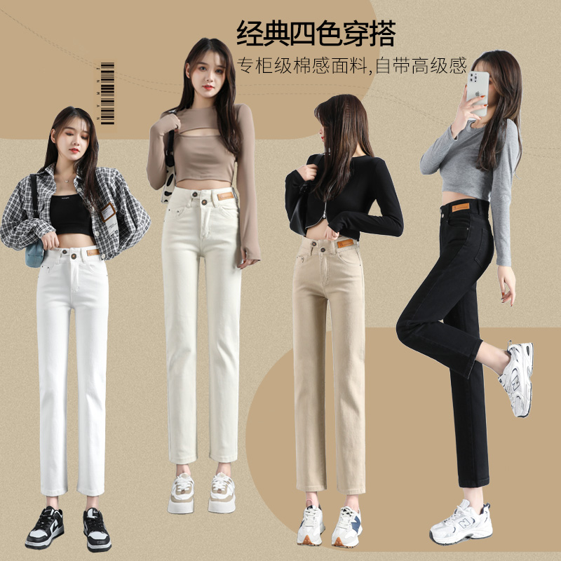 Jeans Woman Straight Barrel Loose 2022 Spring Summer New 90% Small Taller Waist Display Slim 100 Hitch Smoke Pipe Pants