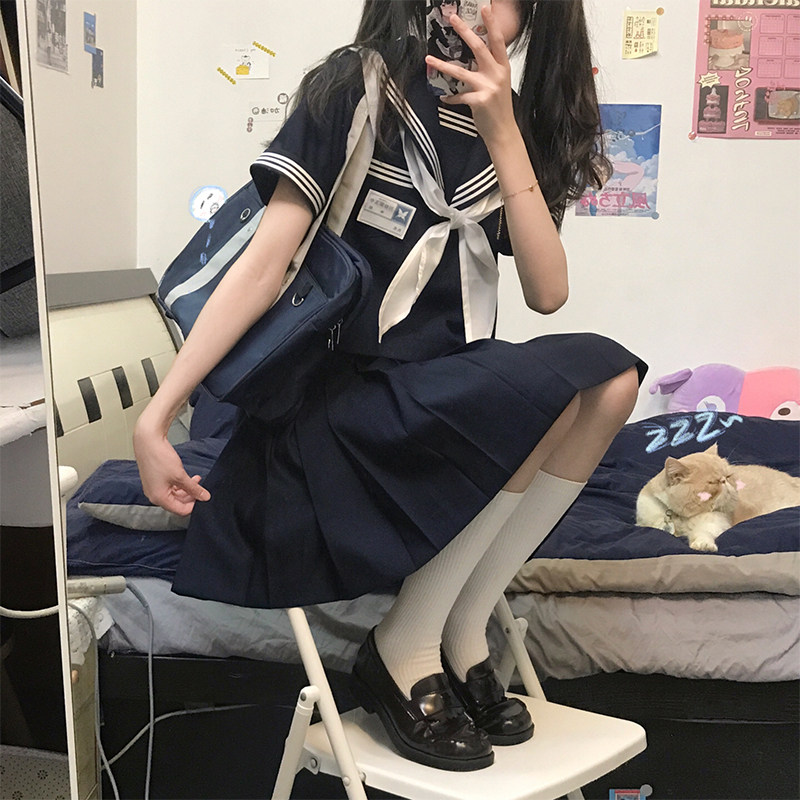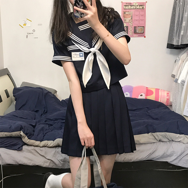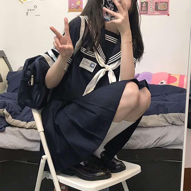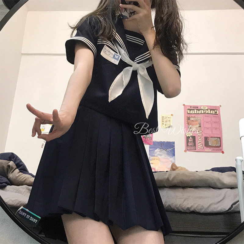 (Chuangu Lanyuzhong) JK original uniform school supply summer clothes short-sleeved sailor uniform skirt