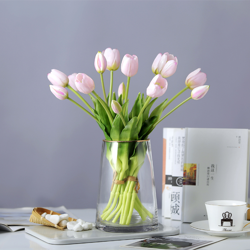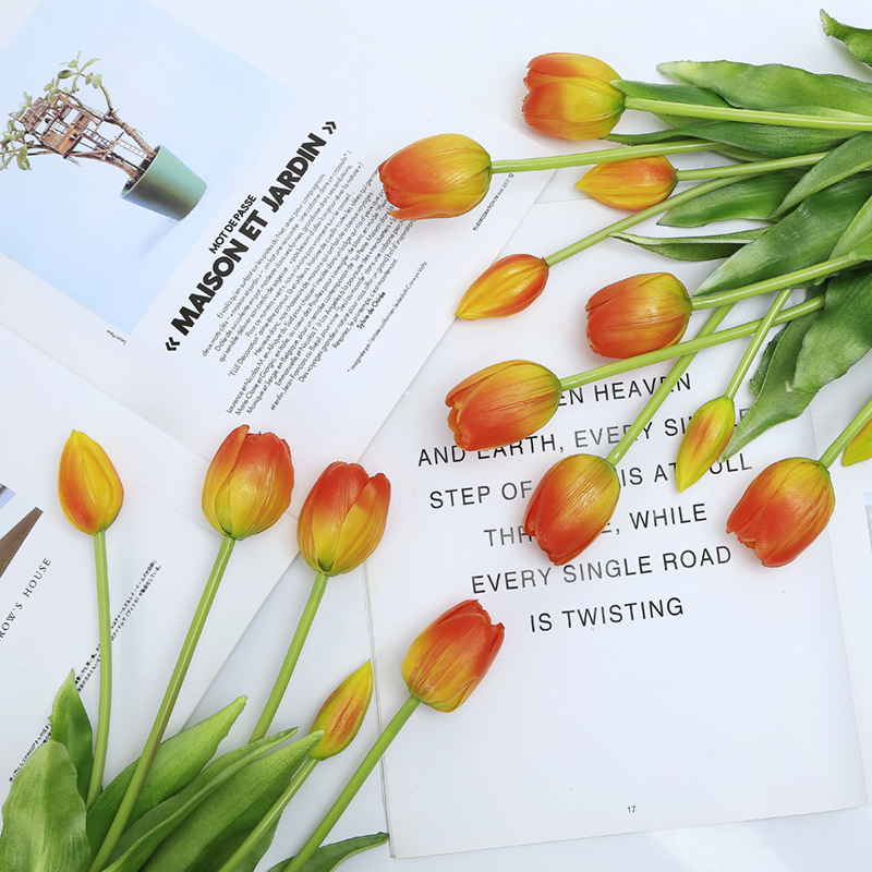 Nordic Ins Wind Upscale PU Feel Tulip Emulated Flowers Fake Flowers Indoor Table Tea Table Decorative bouquet hem