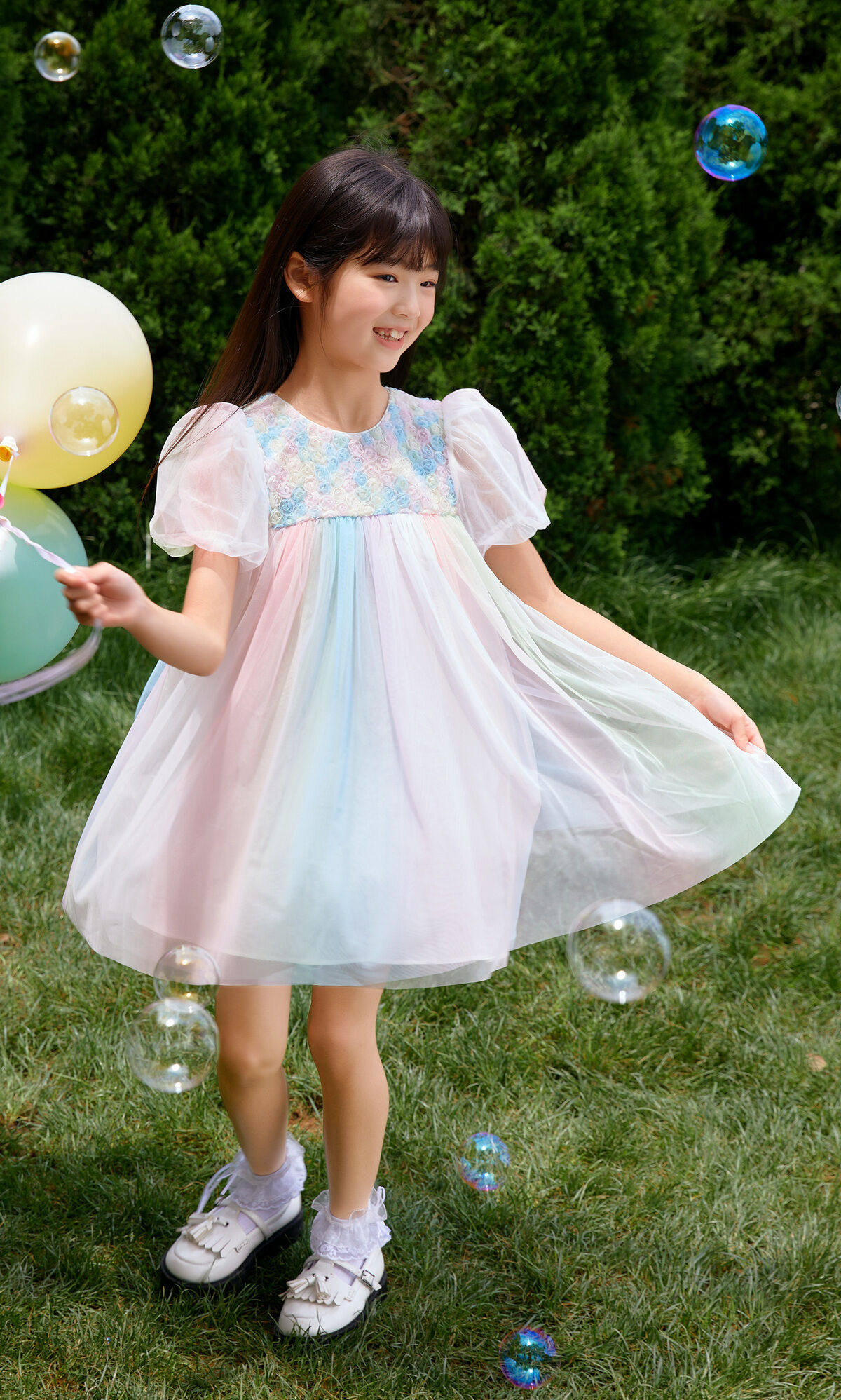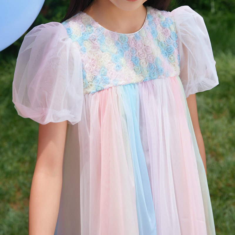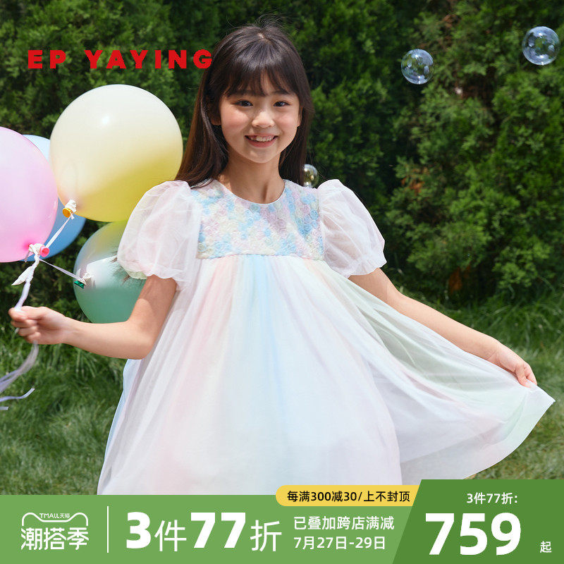 Mall Same-style EP YYing Tong-clothing 2022 Summer Girls' new foreign Piano Macaron Little fresh and big swing dress