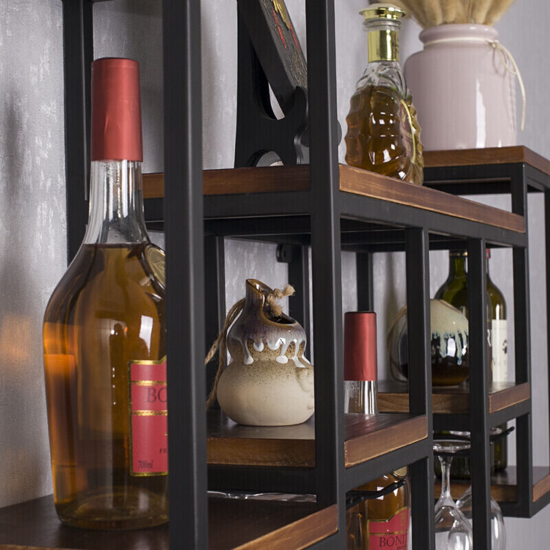 Czech one trillion European style iron art solid wood wall set things industrial wind wall-mounted dining room creative display cabinet red wine rack hanging cabinet wine
