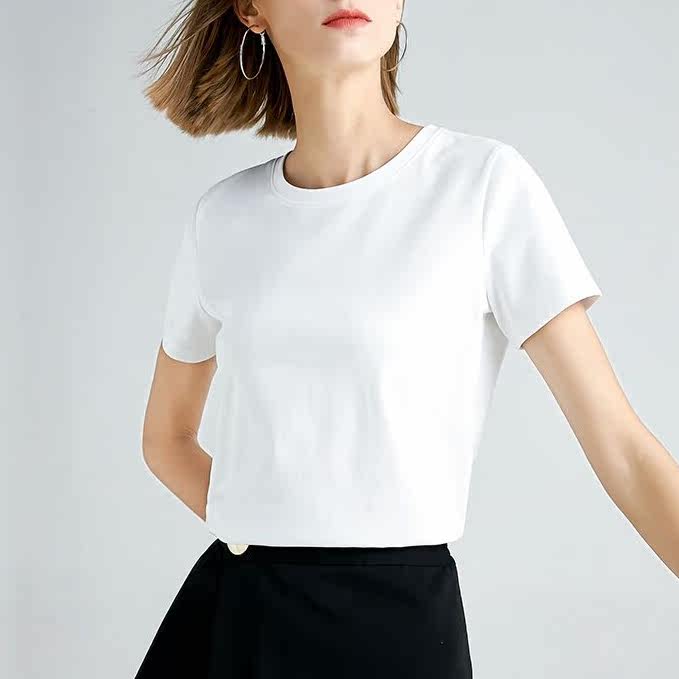 Mercerized cotton short-sleeved white t-shirt women's pure cotton summer round neck top 2022 new simple temperament bottoming shirt