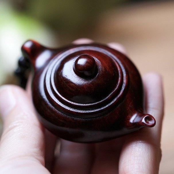 Retro big leaf red sandalwood mahogany carved pumpkin handle pot Wen play hand car key pendant