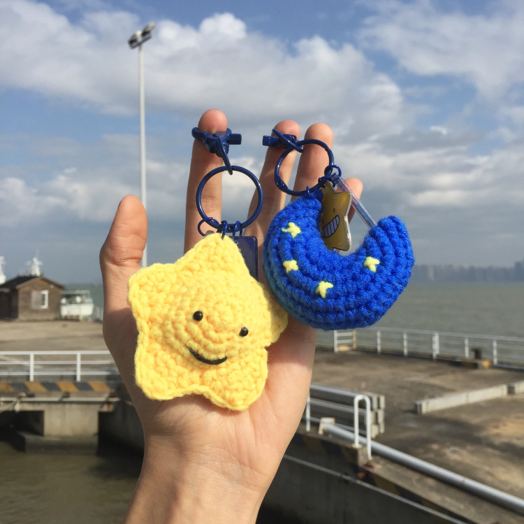 Star moon wool hand-woven creative cute bag small pendant car key chain pendant walking heart gift