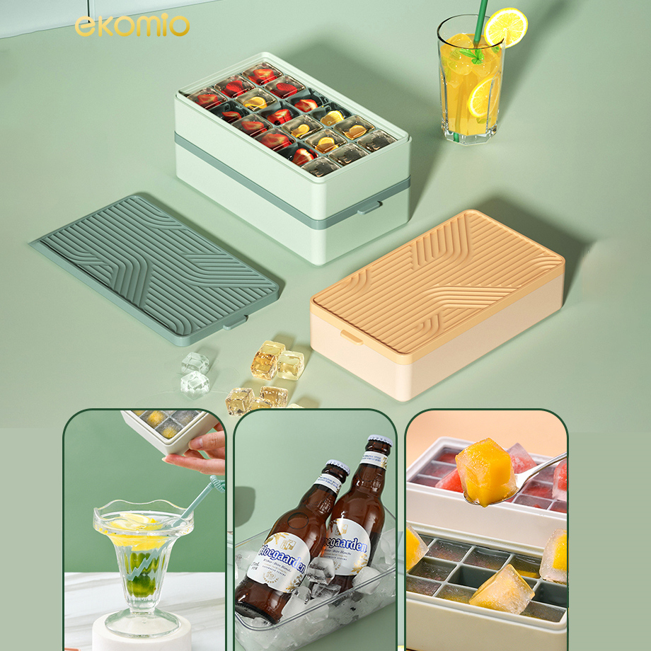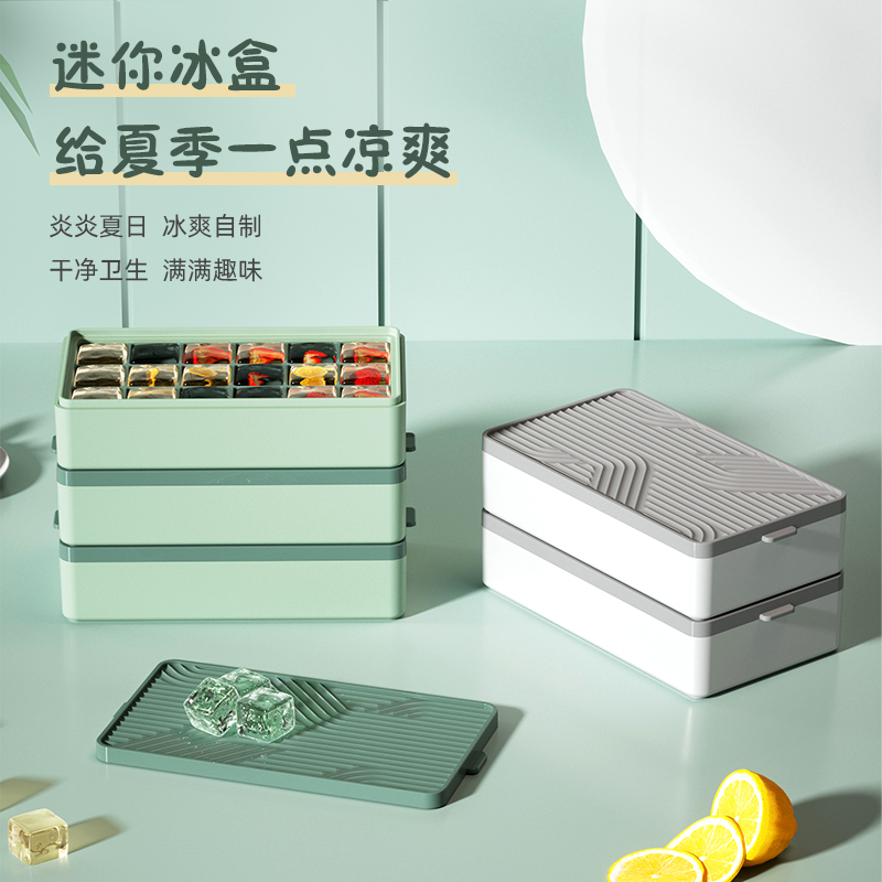 Ice Mold Mold Ice Maker home Large-capacity food-grade silicone gel mesh Red with lid Refrigerator frozen ice cubes storage box