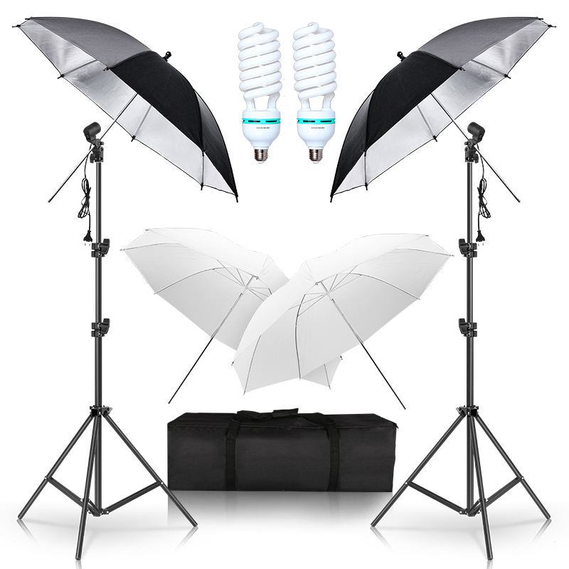 White Umbrella Set White Umbrella Double Light Set Black Umbrella Set Black Umbrella Double Light Set Black Umbrella White Umbrella 150W Double Light Set