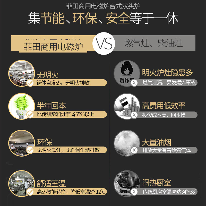 Commercial electromagnetic cooker 5000W high power hotel household 3500w double - head flat - surface desktop blast fire stove
