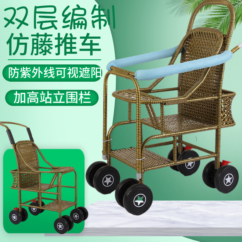 Baby bamboo rattan stroller lightweight baby rattan chair children imitation rattan bamboo rattan toddler summer stroller heightened