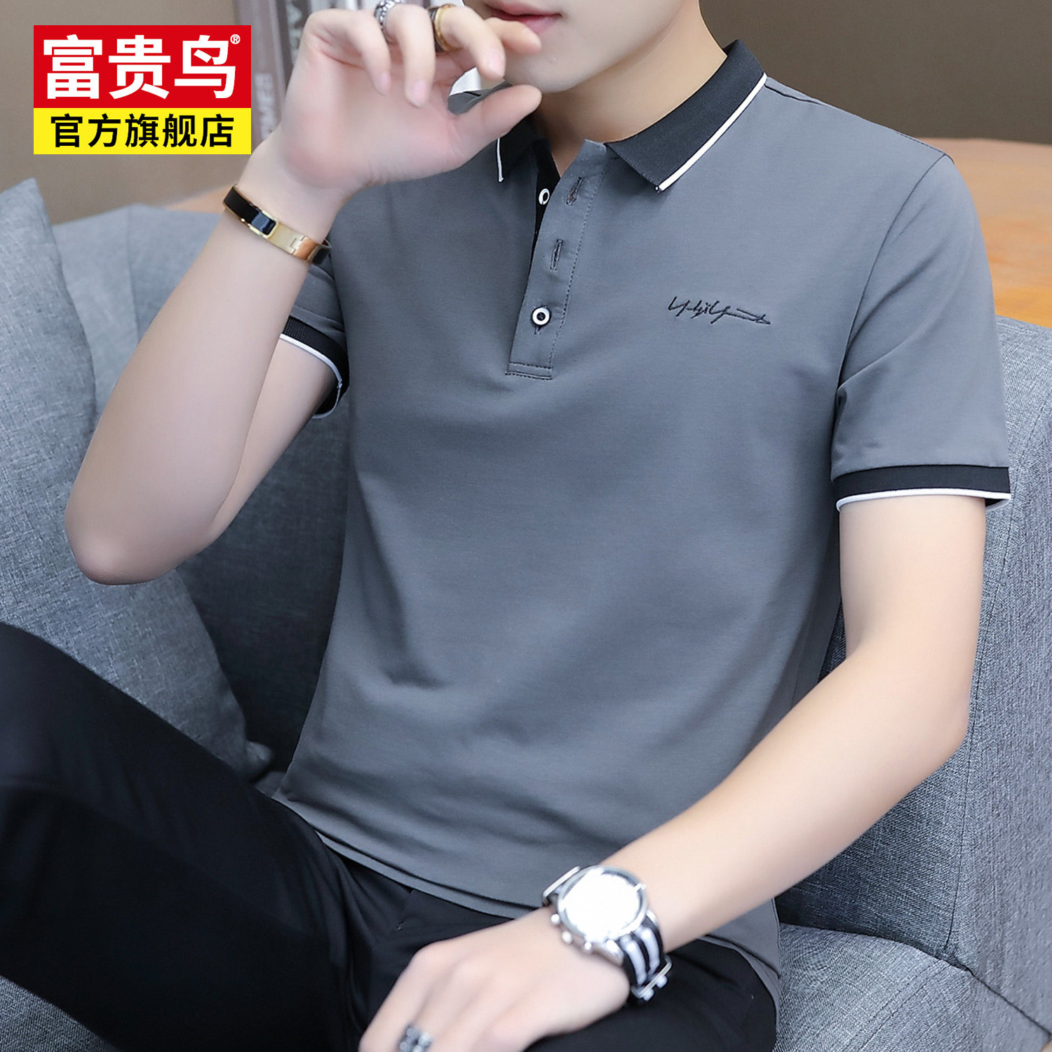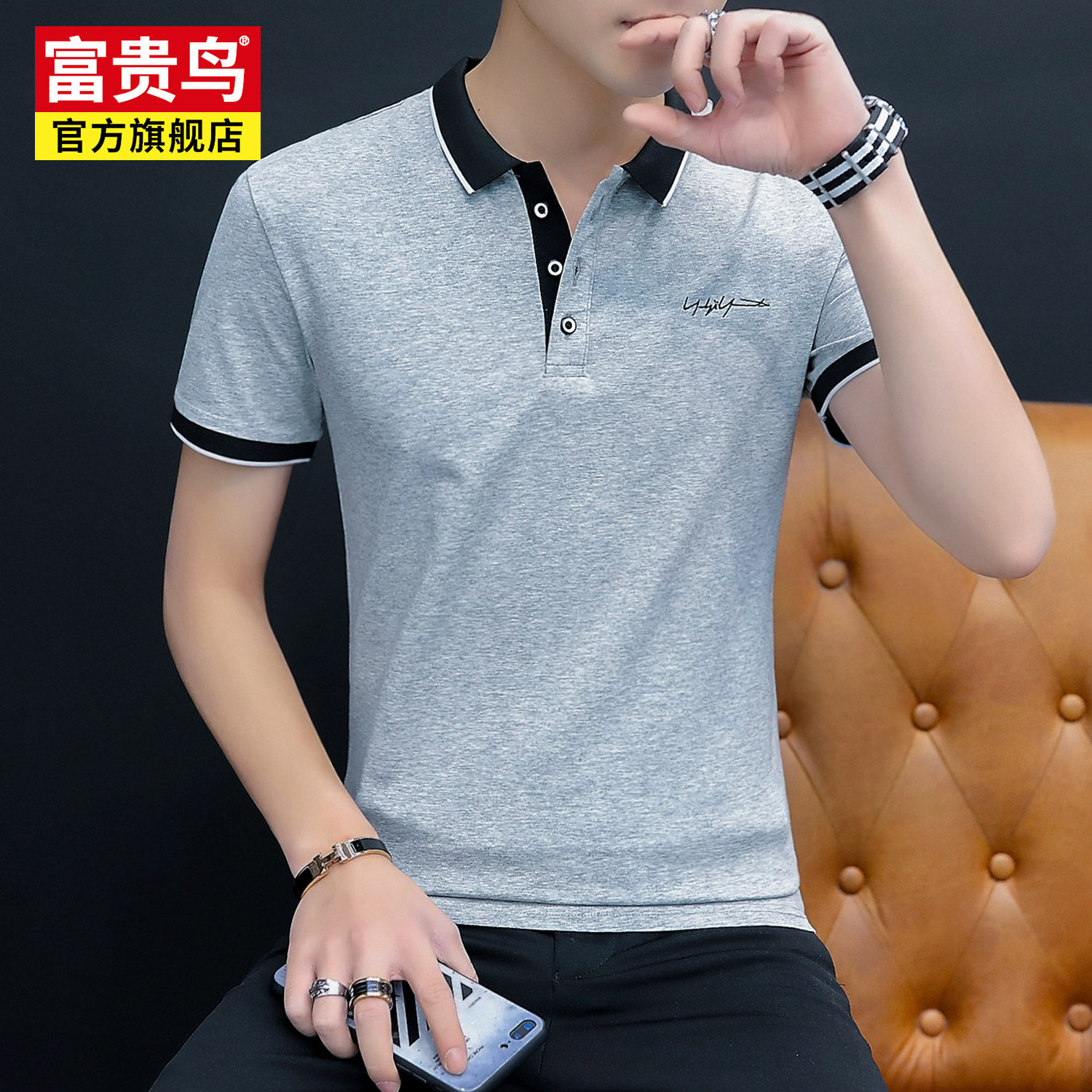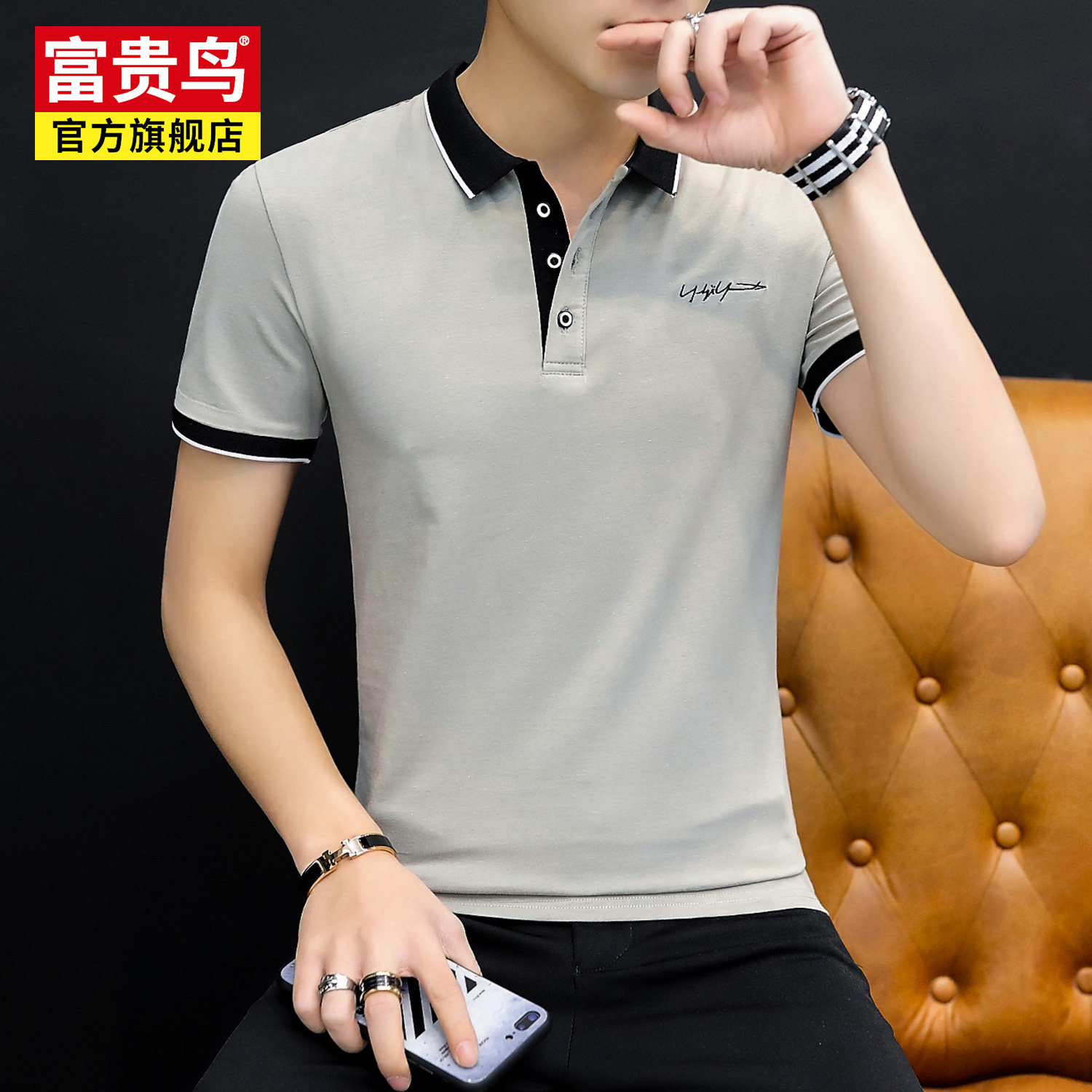 Rich bird short-sleeved polo shirt men's T-shirt 2022 summer new middle-aged and young business casual lapel cotton T-shirt