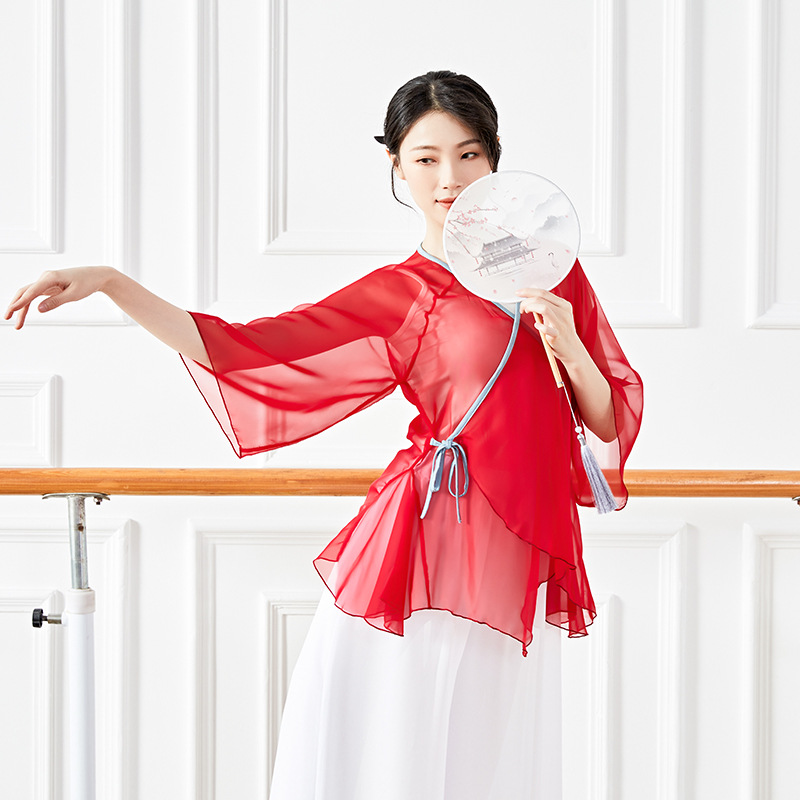 Classical dancer adult body training clothes elegant ancient style outer rhythm clothes gauze cloak folk dance clothing