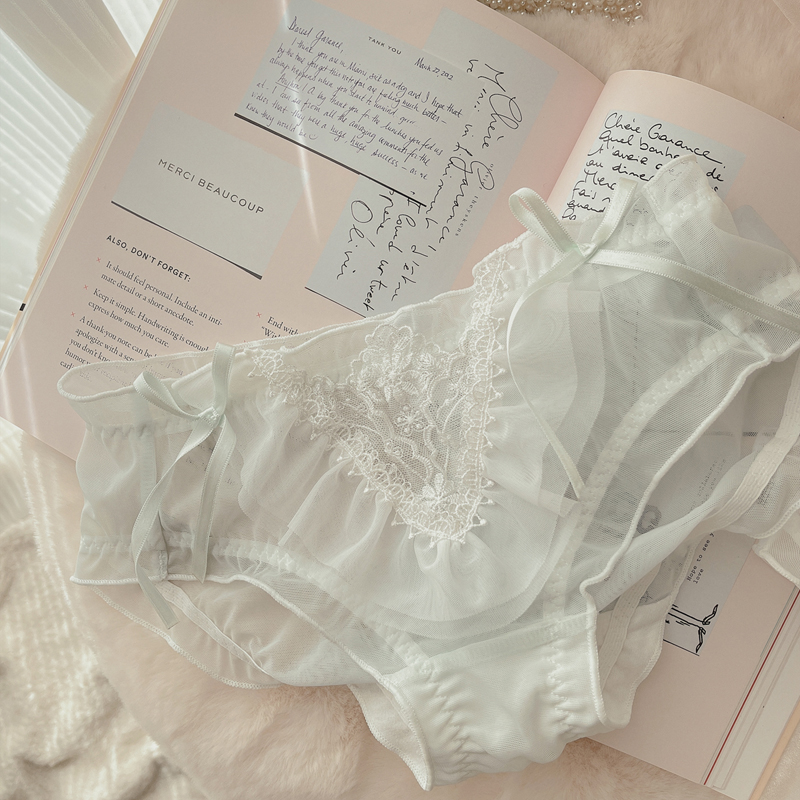 Japanese panties girl light soft breathable net bow embroidered ribbon sweet sexy triangles girl