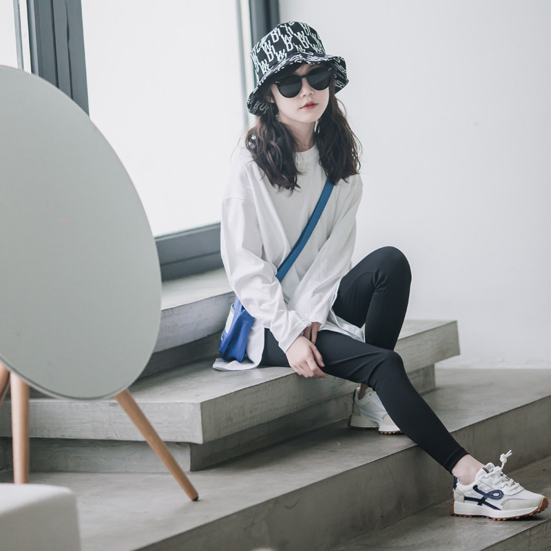 Girl White T-Shirt Dress Foreign Pawn Child Spring Dress 2022 New pro-child clothes children in Long Edition Loose Undershirt Tide