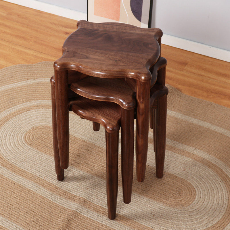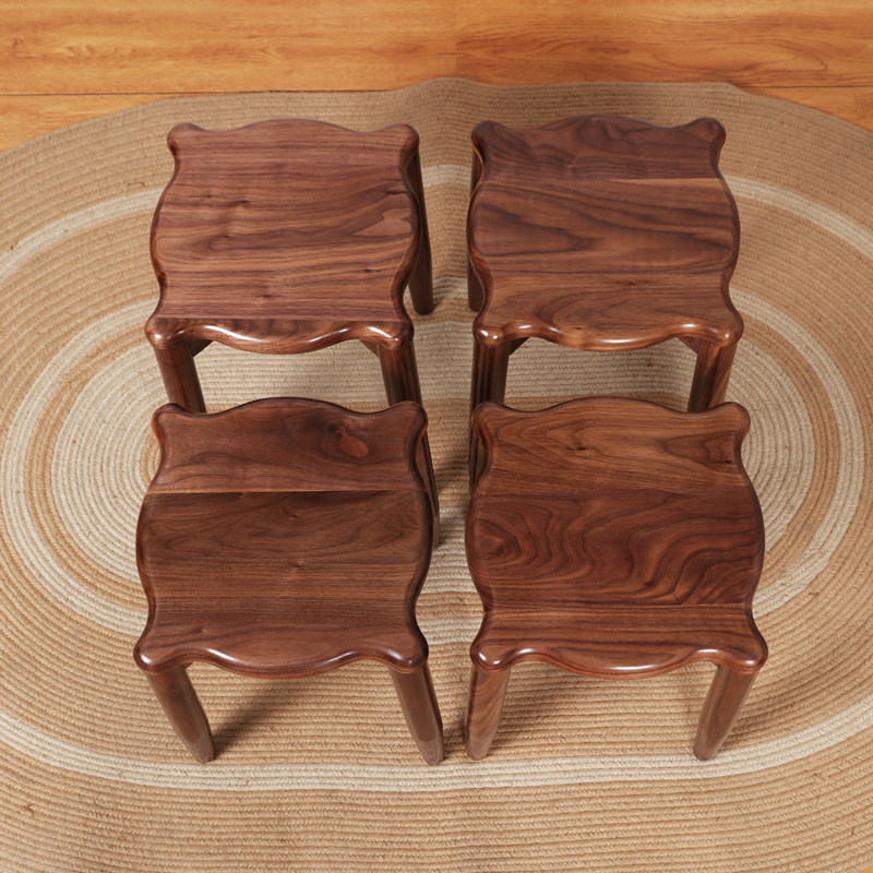 Nordic solid wood dining room bench stacking storage low stool small round stool black walnut square stool dining chair stool modern minimalist