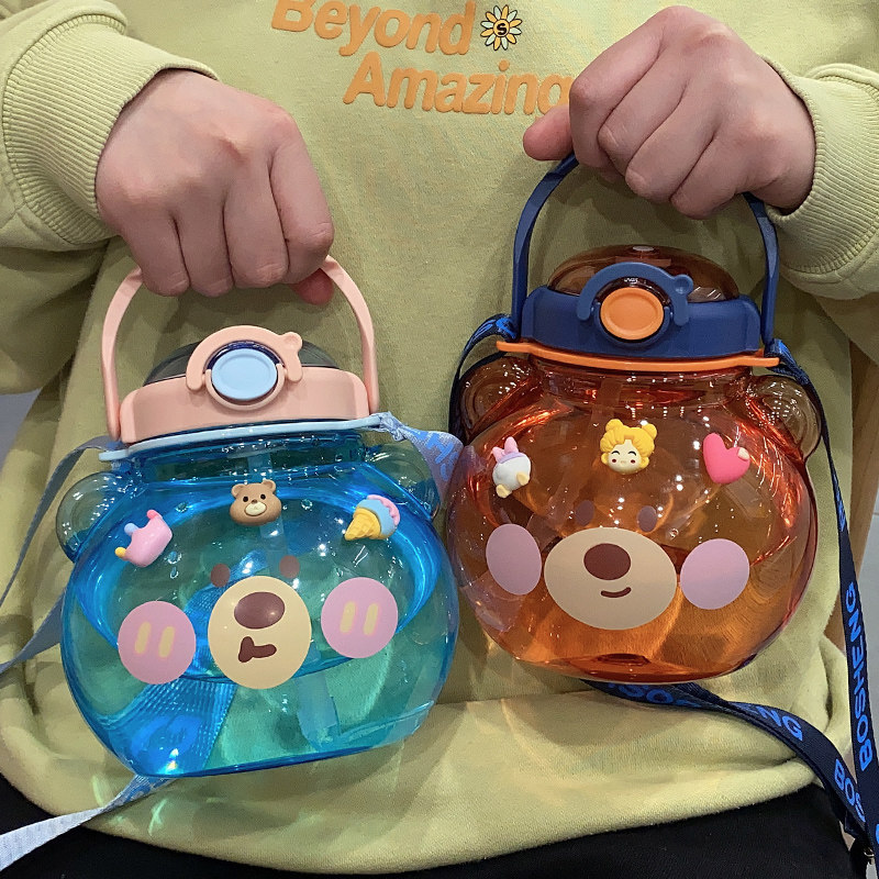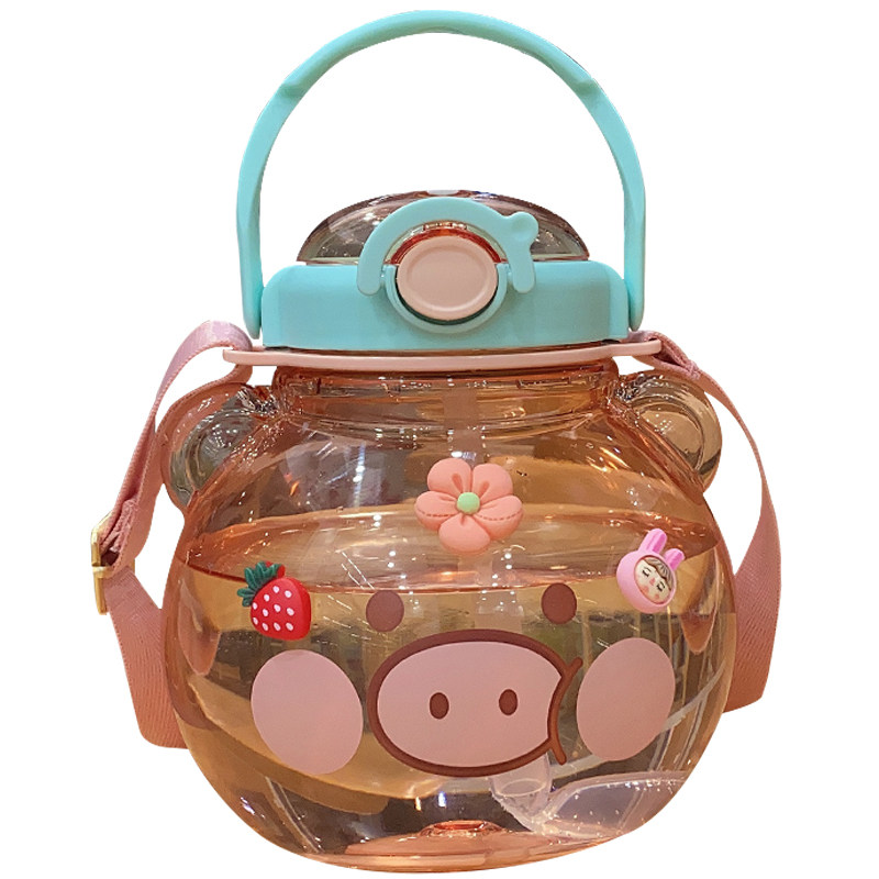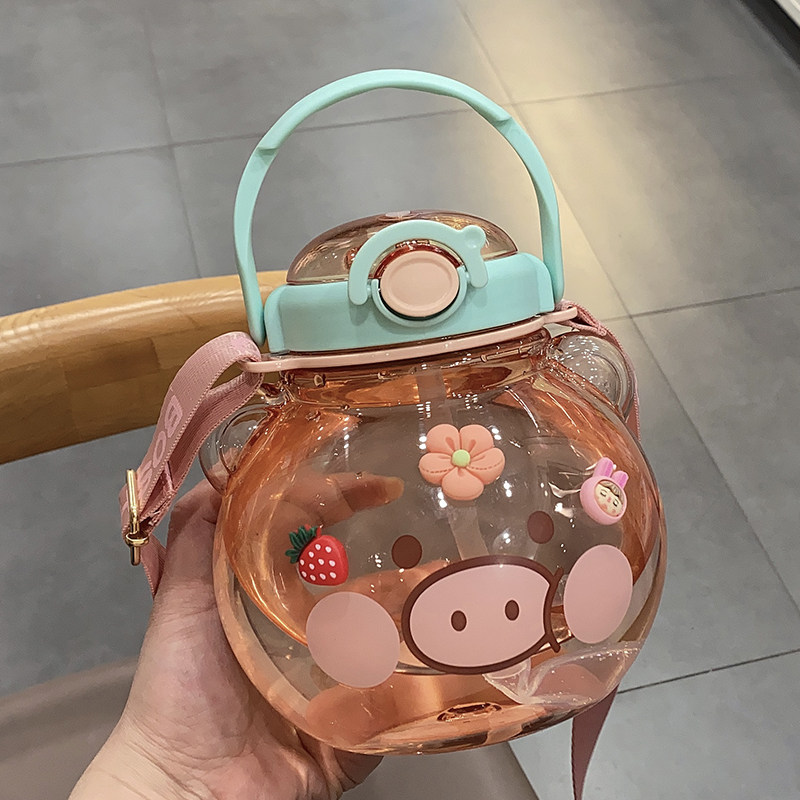 Net Red Large Belly Cup Cute Large Capacity Sports Kettle Child Straw Cup Portable High Face Value Student Plastic Cup