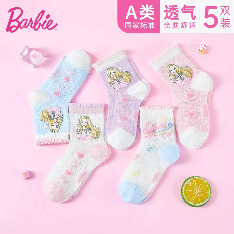 Barbie Princess Children's Socks Summer Thin Princess Cartoon Girls Lace Cotton Socks Mesh Breathable Sweat-absorbent Children's Socks