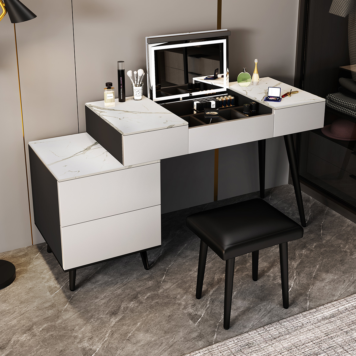 Modern minimalist rock slab dressing table storage cabinet integrated light luxury flip makeup table computer table dual-purpose table retractable