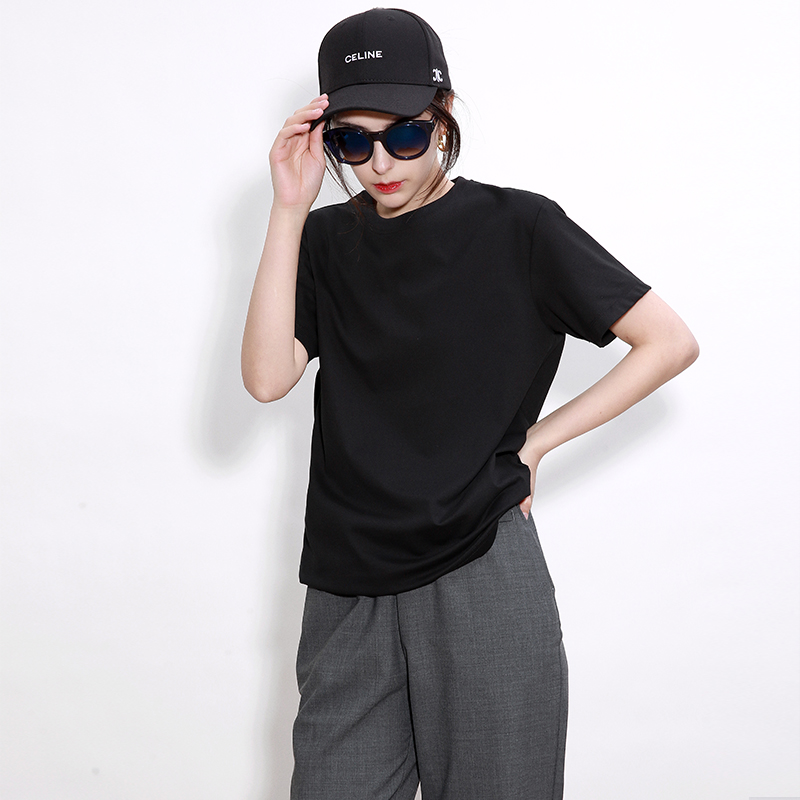 NZ high definition B* V triangle elevation branch New frontier cotton loose round collar pure color short sleeve T-shirt female blouse 2022 new