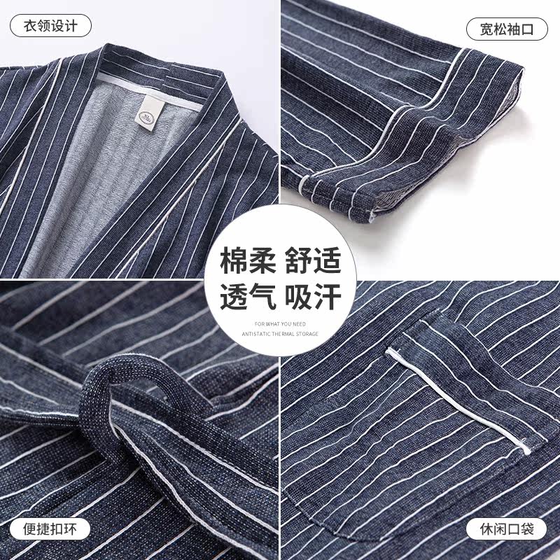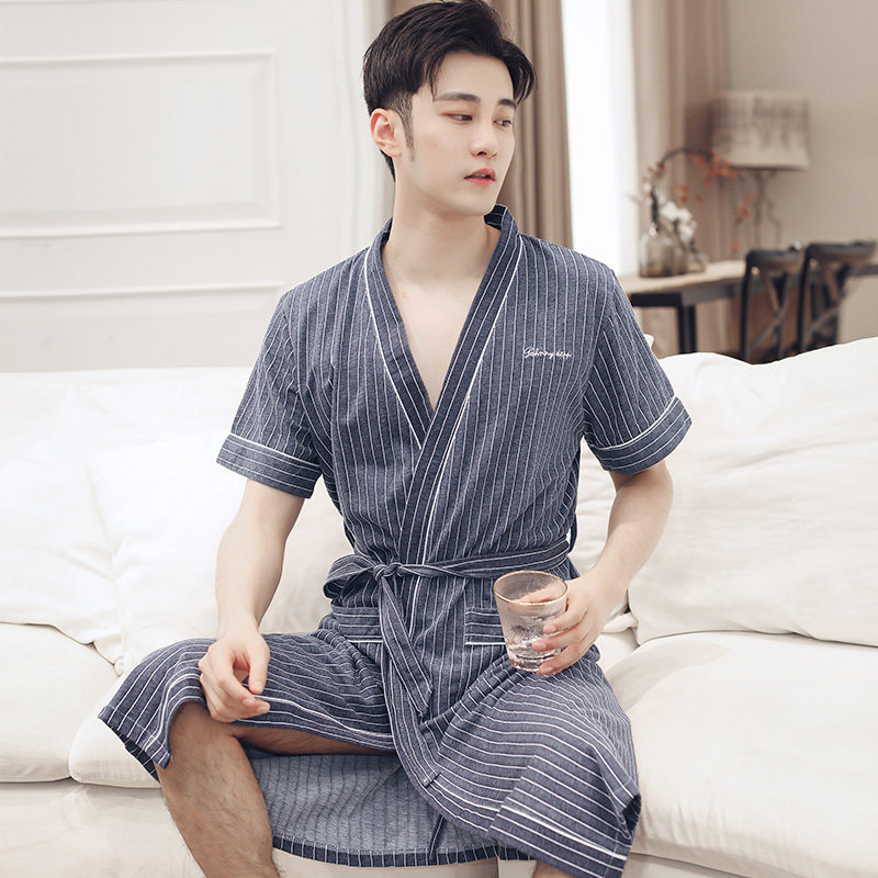 Sleeping Robe Men's Summer Pure Cotton Short Sleeves Mid long version Bathrobes Home Clothing Day Style Casual Large Size Summer Morning Gown Pajamas