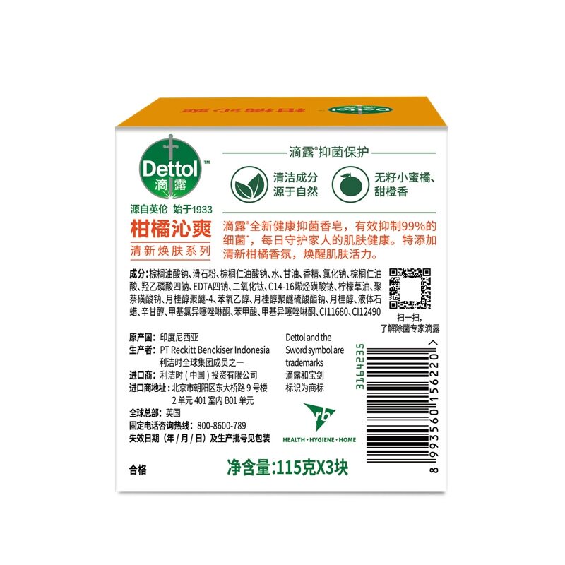 Dettol citrus refreshing healthy antibacterial soap household cleaning laundry bathing hand soap 115g*3 pieces