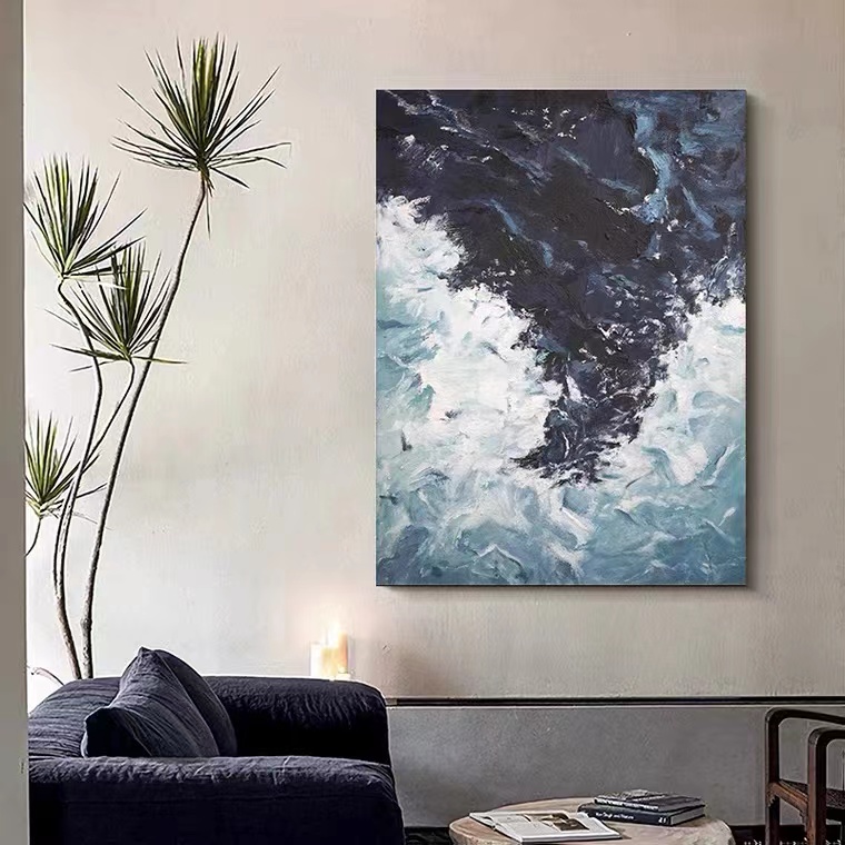 Hand-painted oil painting living room three-dimensional wave texture painting entrance large abstract painting wabi-sabi style modern homestay decoration painting - Taobao