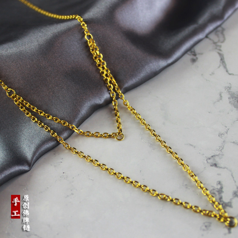 Buddha brand chain Thai gold color necklace male and female long version O-shaped collarbone chain double hanging two three five hanging does not fade