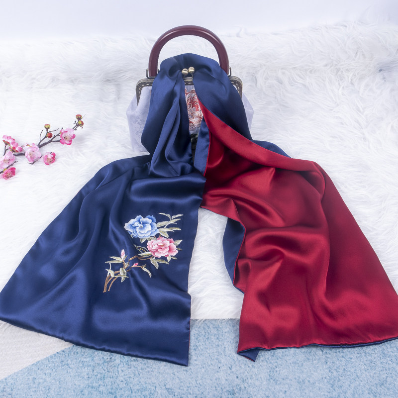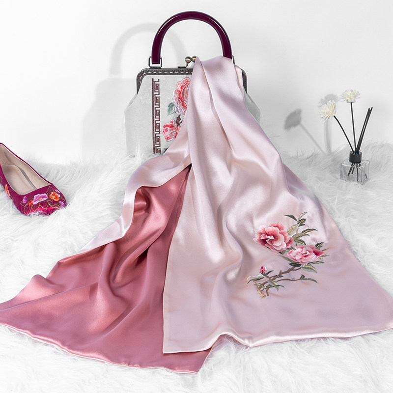 Shu embroidery full silk scarf female mulberry silk scarf Chengdu hand embroidery gift all-match silk outer small shawl