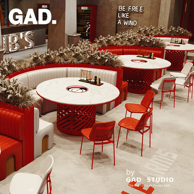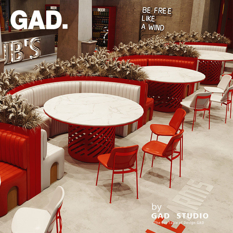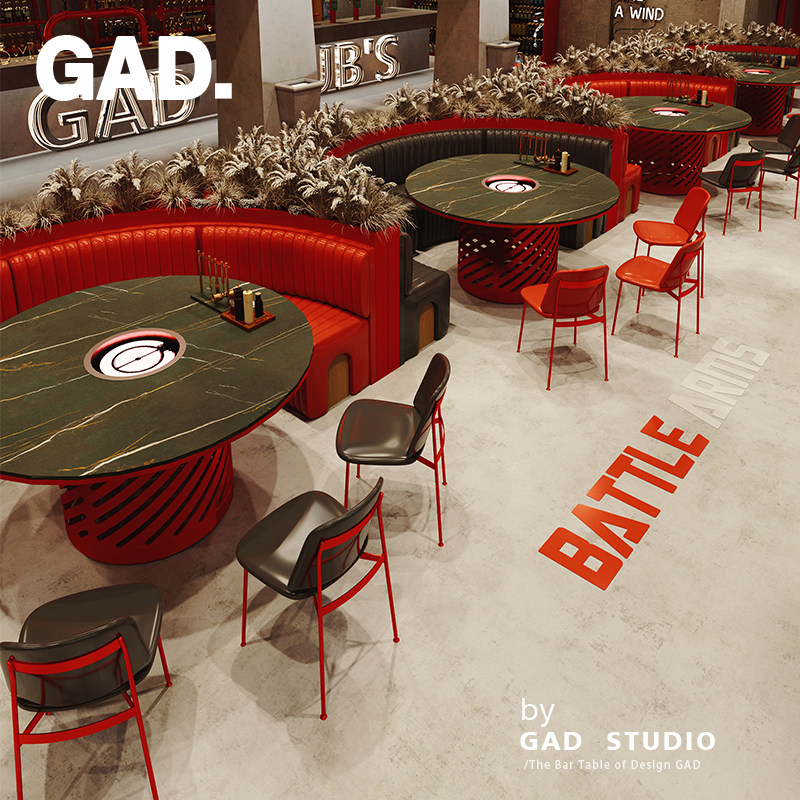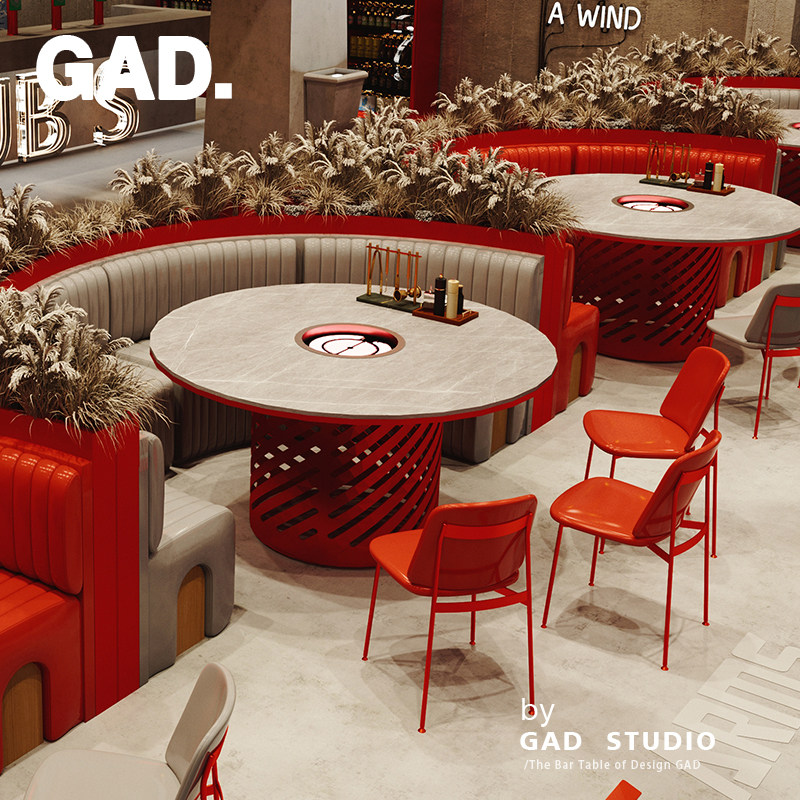 Red theme Qing Bar Restaurant Customized semi-circular sofa card seat by wall tea building table and chair combination
