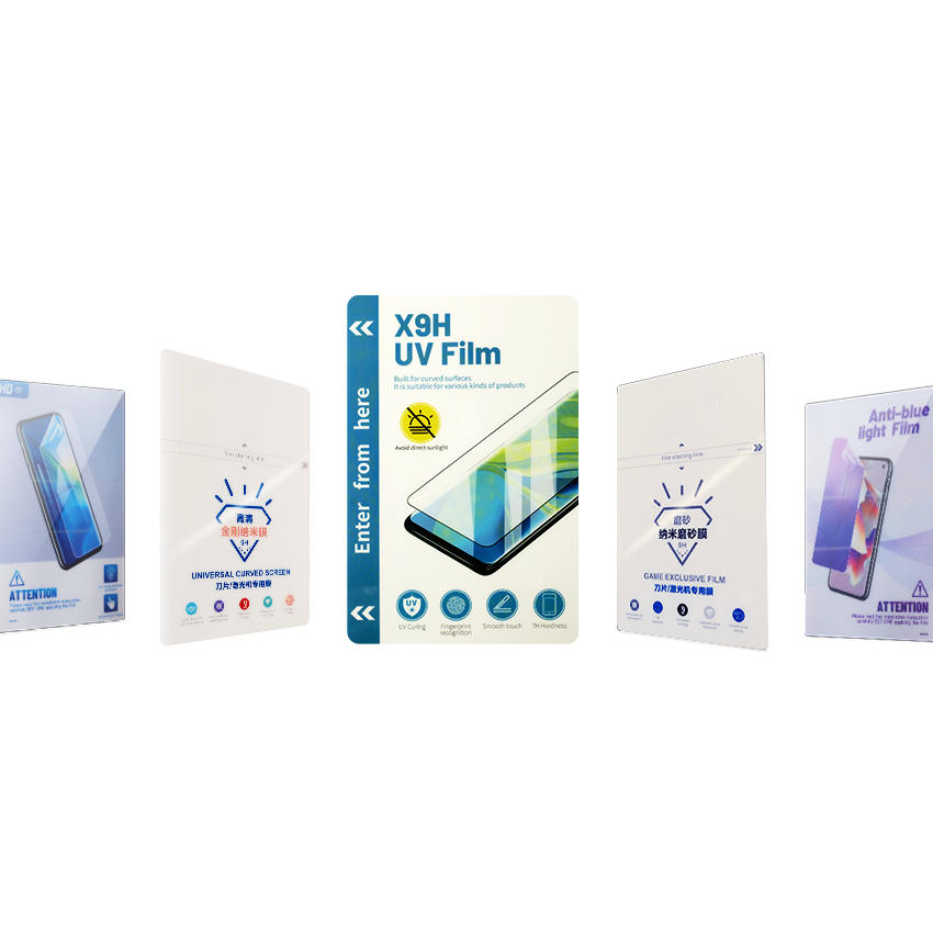 10 sheets of UV-LED light-cured full-screen diamond film with standard thickness 10 sheets of UV film (no glue used) for thin models 10 sheets of anti-pressure and second repair full-screen hydrogel film 30 sheets