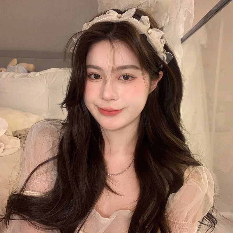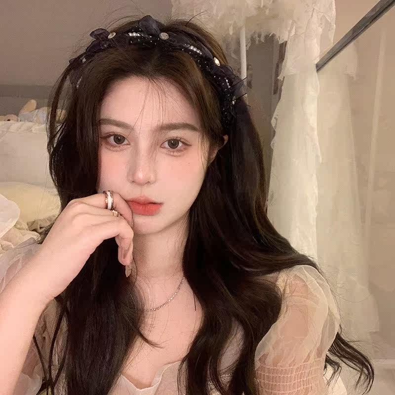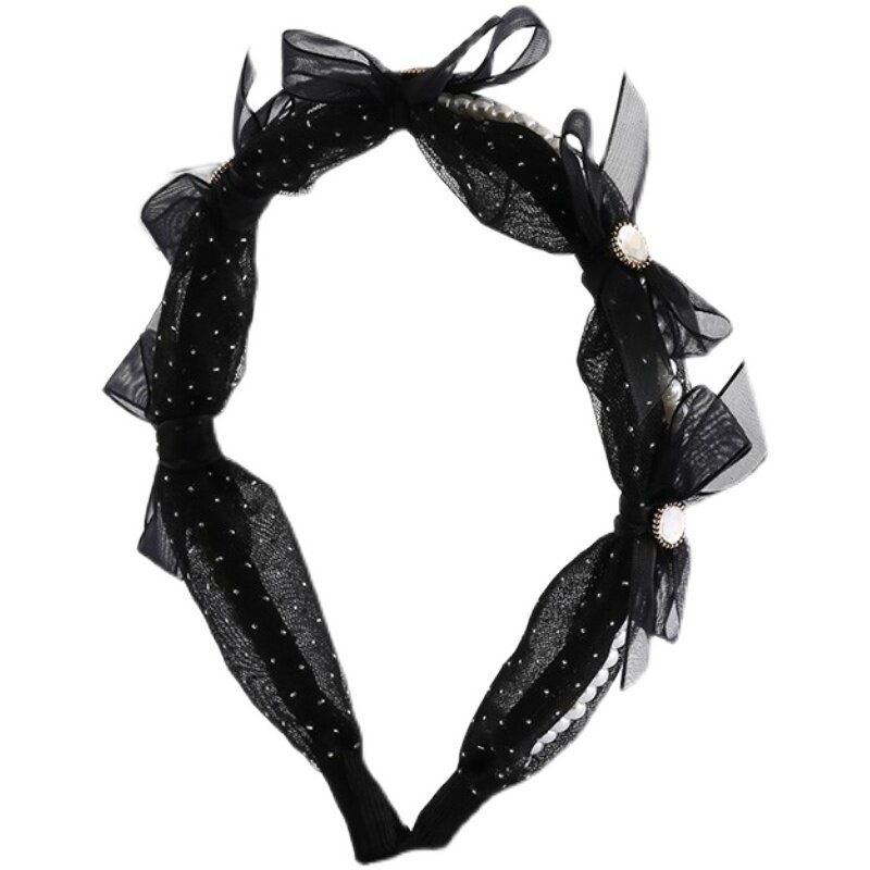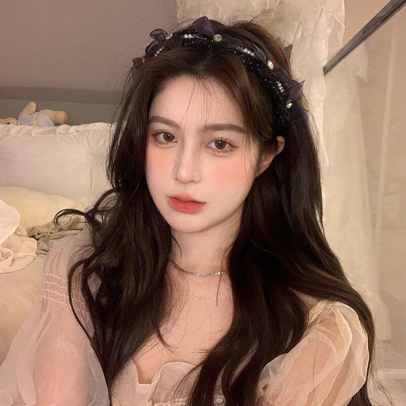 Korean net red organza bowknot pearl headband women's French style heightened skull top headband super fairy hairpin hair accessories