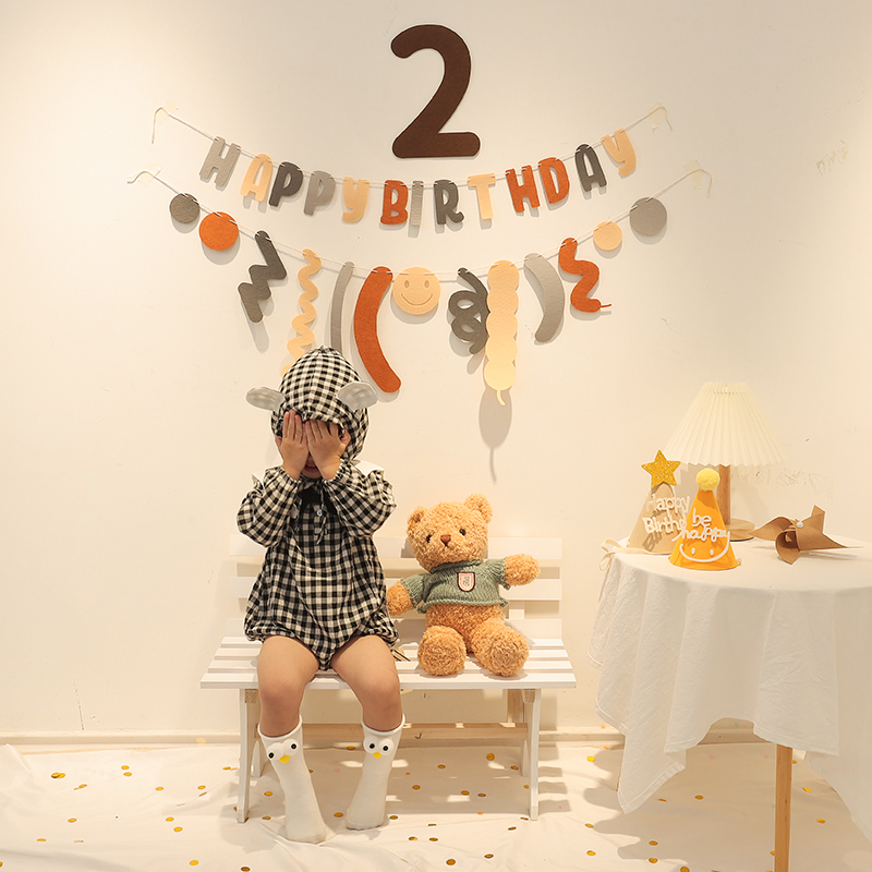Retro Color Birthday Letter Pull Flag Package A Comeback Ancient Color Birthday Letter Pull Flag Roll With Colorful Rolls Suit Color Birthday Letter Pull Flag Roll Curly Night Light-Retro Roll Suit Little Daisy Felt Birthday Pull