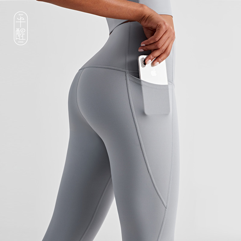 Half-awake ST sports pants high waist tights fitness medium-strength training breathable quick-drying nine points outer wear sports fitness pants