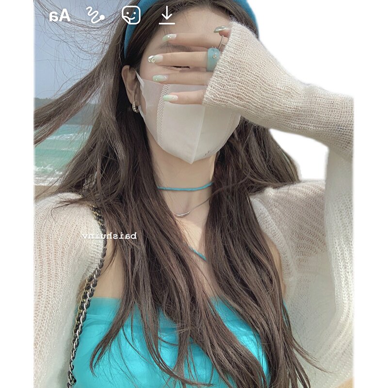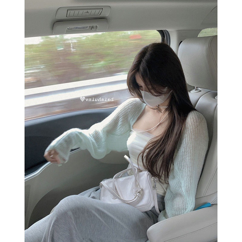 Soft glutinous sunscreen knitted cardigan for women's spring and summer thin outer lap pure desire hooded sweatshirt muscular sense long sleeve Beaty blouse