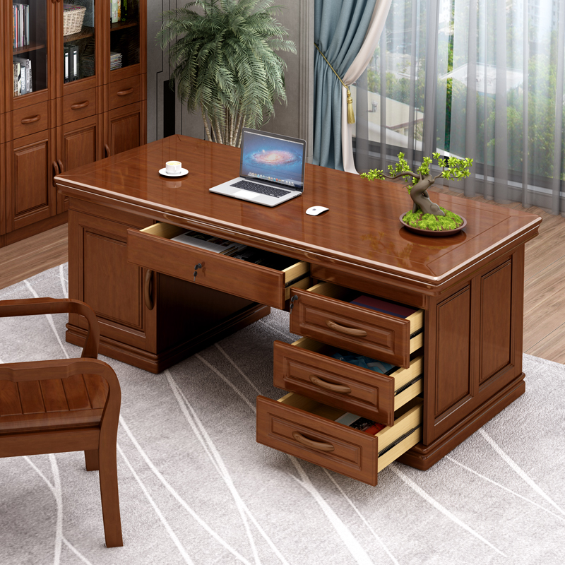 Solid wood desk atmosphere boss table and chair combination new Chinese executive desk single computer desk home writing desk