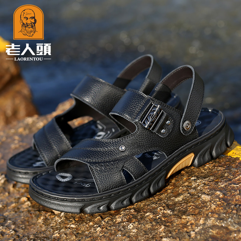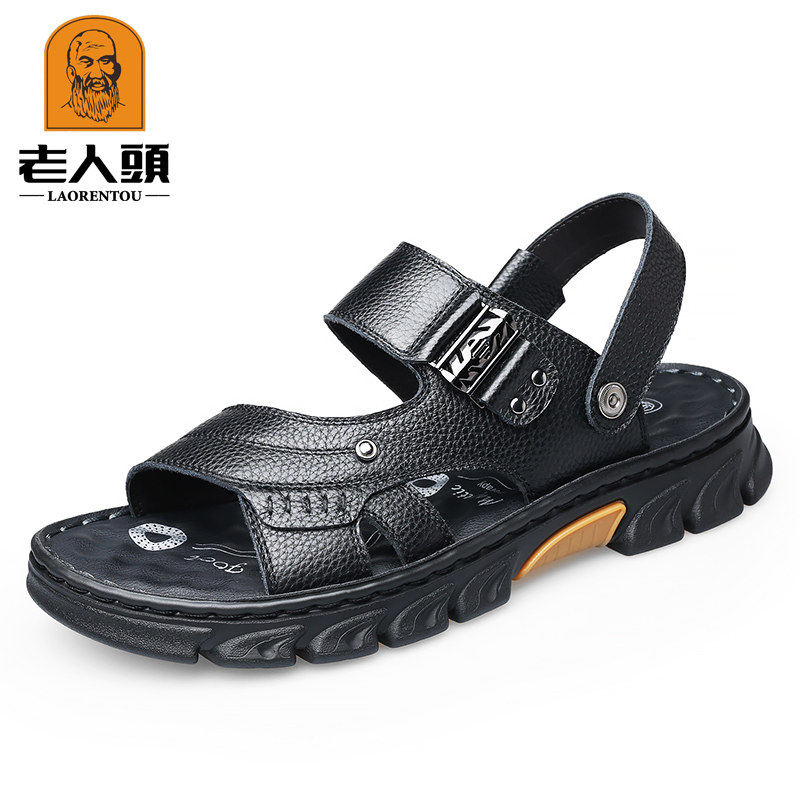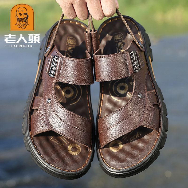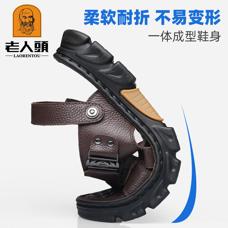 Old man's head sandals men's summer genuine leather beach shoes men's thick bottom non-slip sandals sandals shoes dual-use breathable midlife daddy shoes