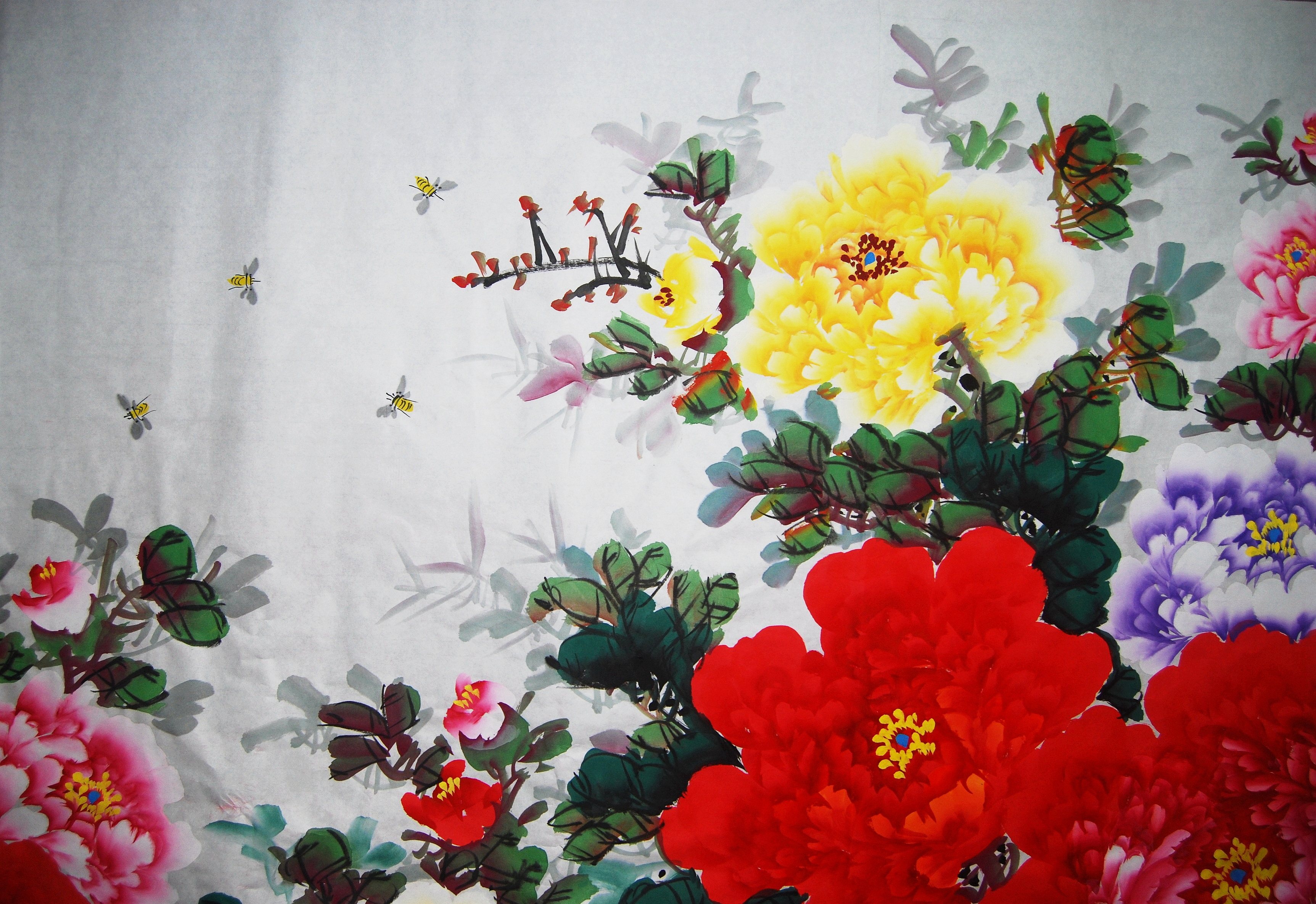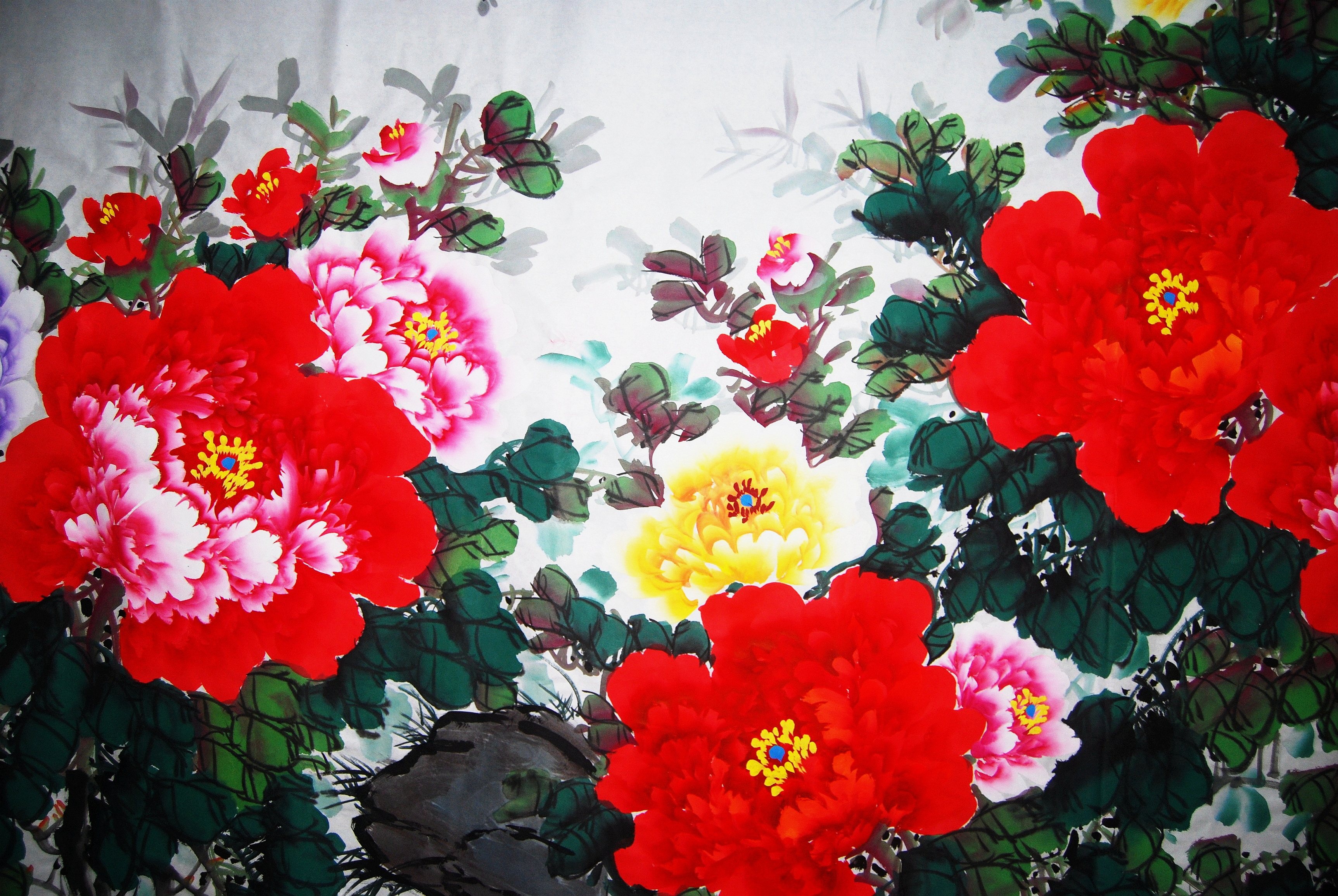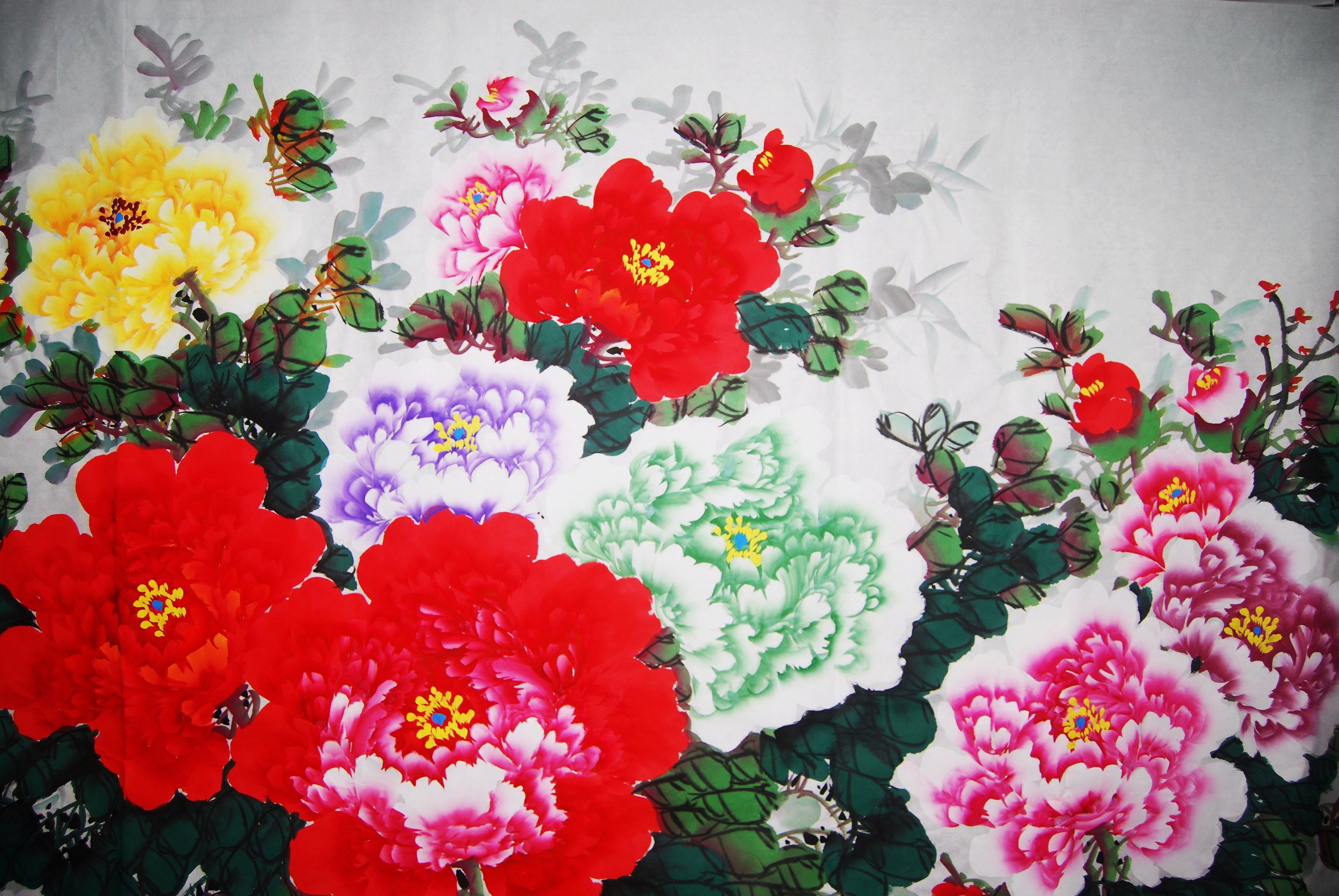 Pure Hand Painted 8-ruler peony Write a State Painter Flower Kaifu Blossom Living Room Office Flowers Bird Decoration Character Painting Feng Shui 1