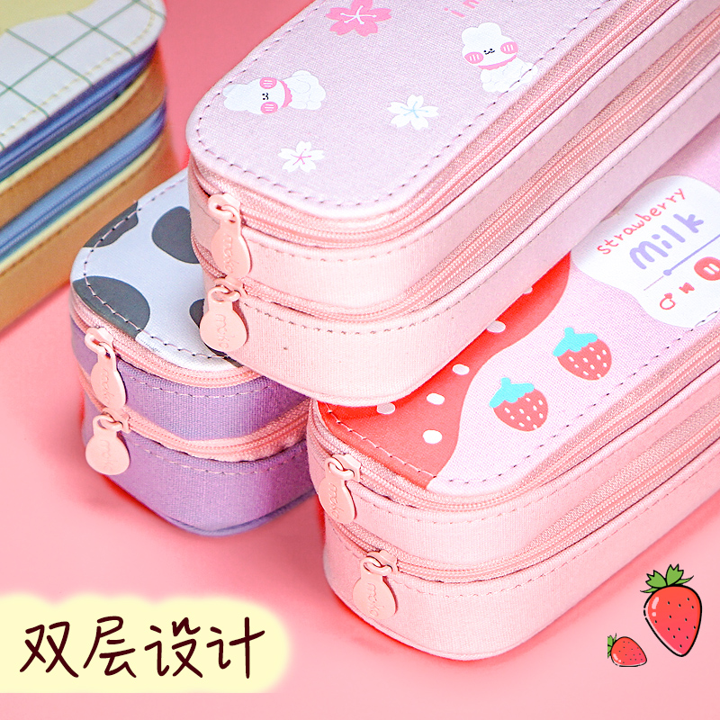 Han's pen pouch net red double layer pencil case large capacity minimalist day series women ins day series children's young girl hearts cute lead pencil case boy creative personality cartoon stationery bag