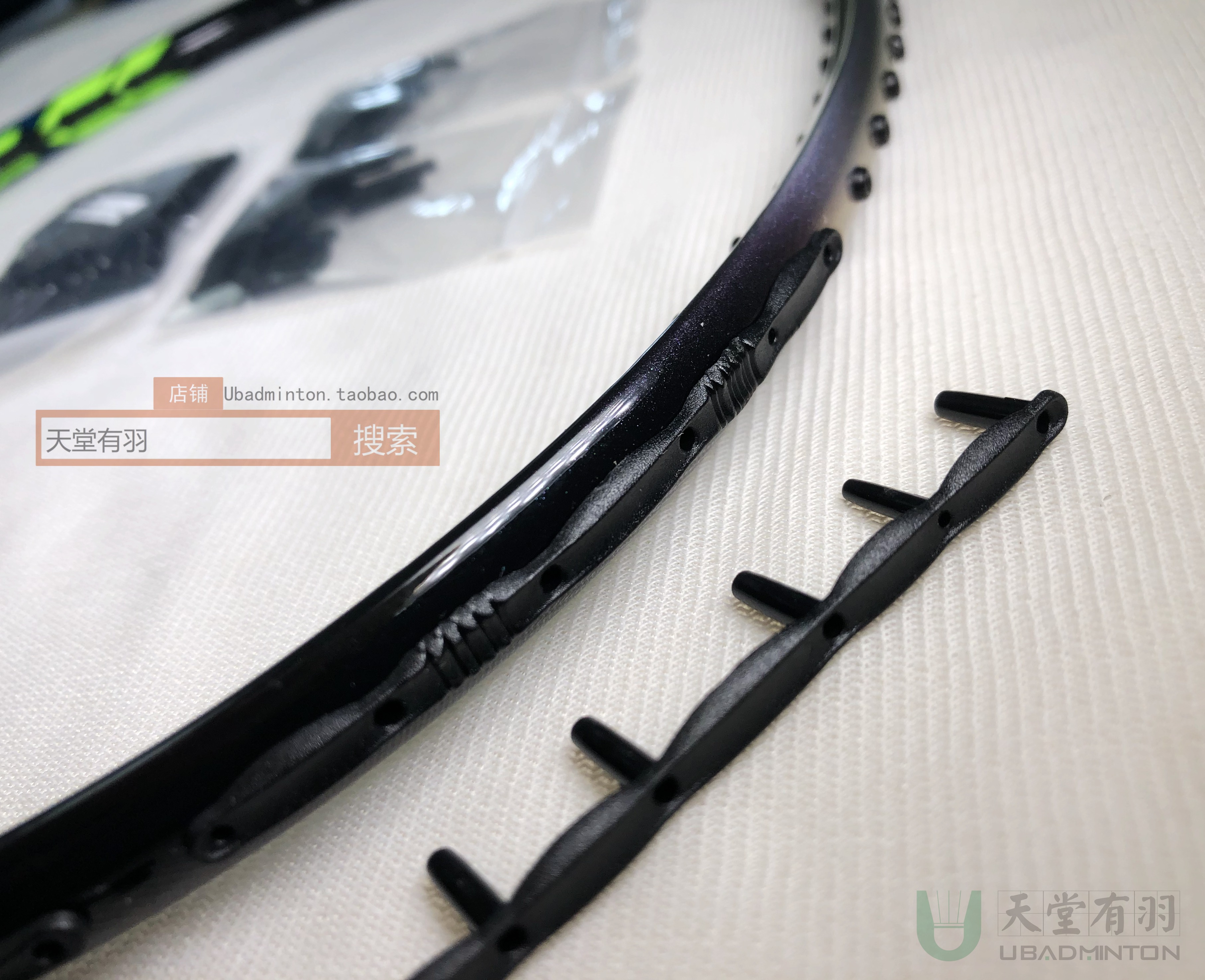 The racket head is thickened with six nails, the default is black, and the default is black. One pair of nails is default. Each pair of classic positions is two or six nails. A pair of black rubber particles.