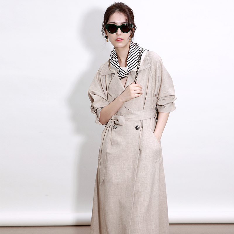 NZ fashionable commuter simple suit collar dark gray profile drape long windbreaker women's casual jacket 2022 autumn