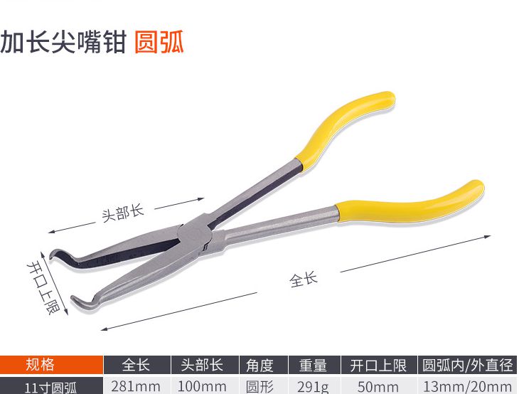 Lengthened sharp-mouth pliers long mouth pliers extra-long type 11-inch flat mouth 45 degrees 90-degree lengthened shank right angle high wire pliers-Taobao