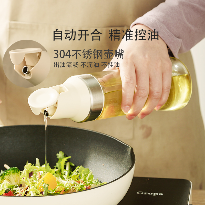 Automatic opening and closing oil bottle (moonlight white) collection plus gift oil pot sticker