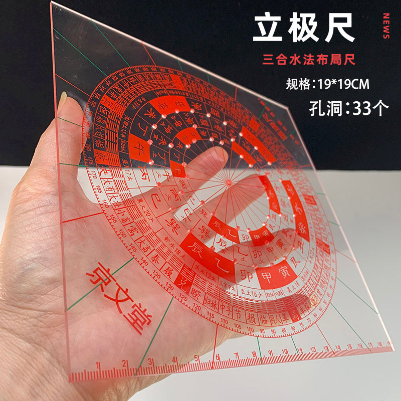 Transparent feng shui compass Luo Geng ruler Yang Gong Sanhe water method house type drawing building layout ruler vertical ruler with 33 holes